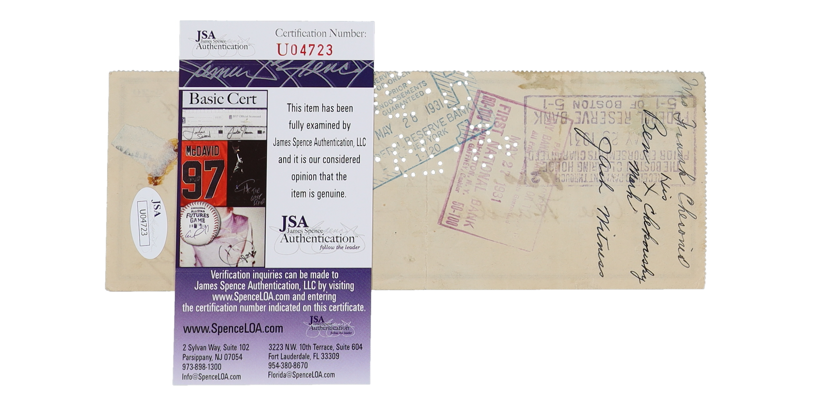 Jack Sharkey Signed 1931 Personal Bank Check (JSA)