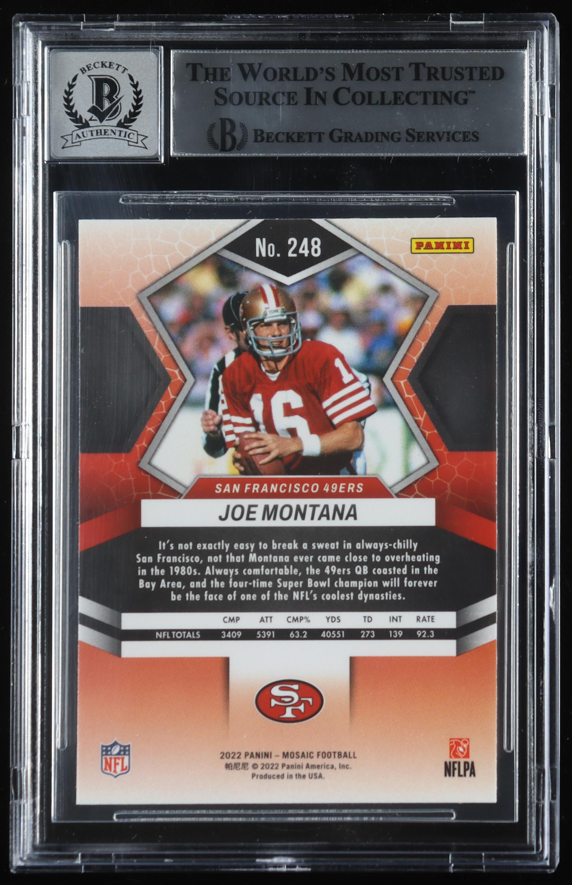 Joe Montana Signed Sticker on 2022 Panini Mosaic #248 (BGS | Auto 10)