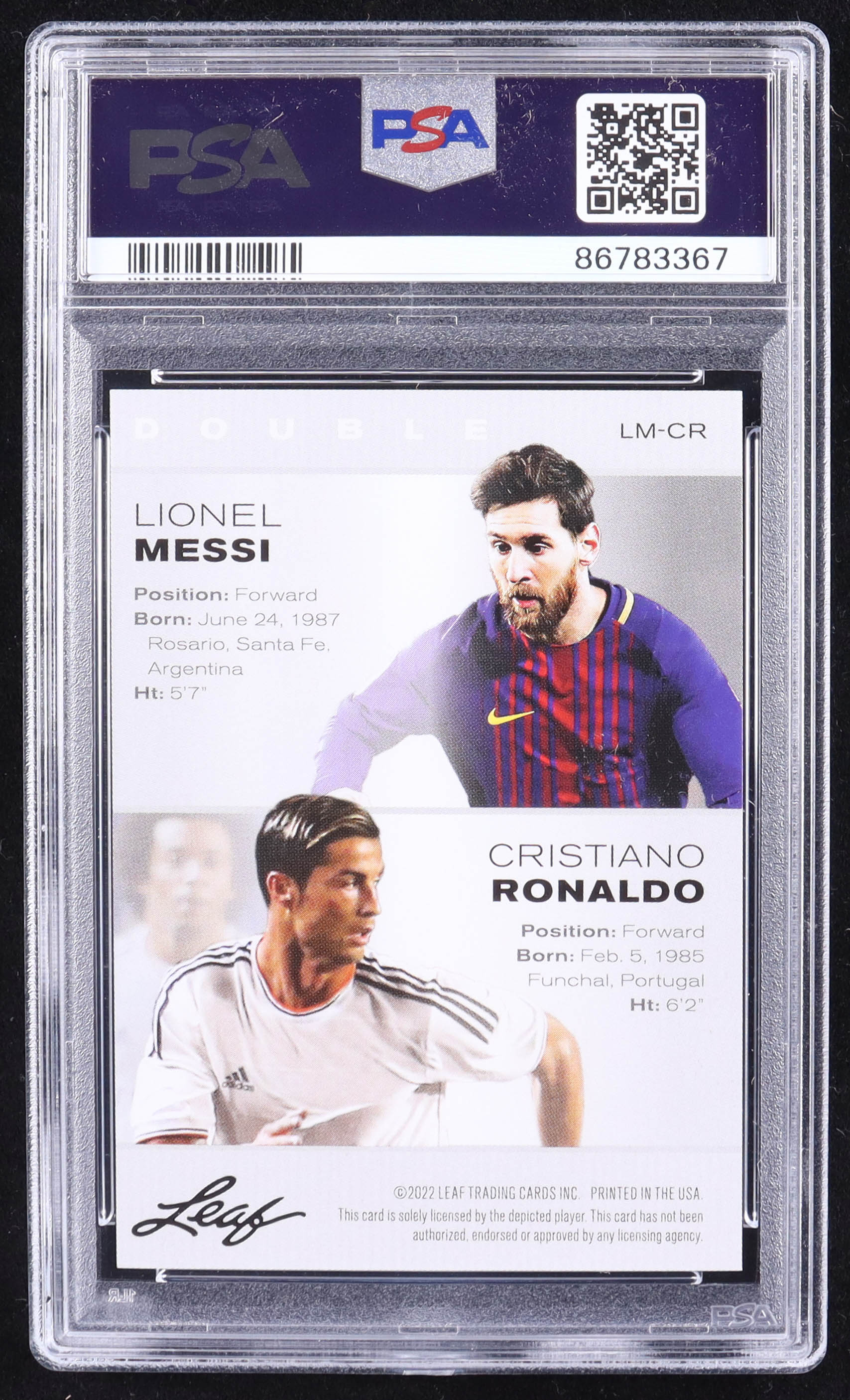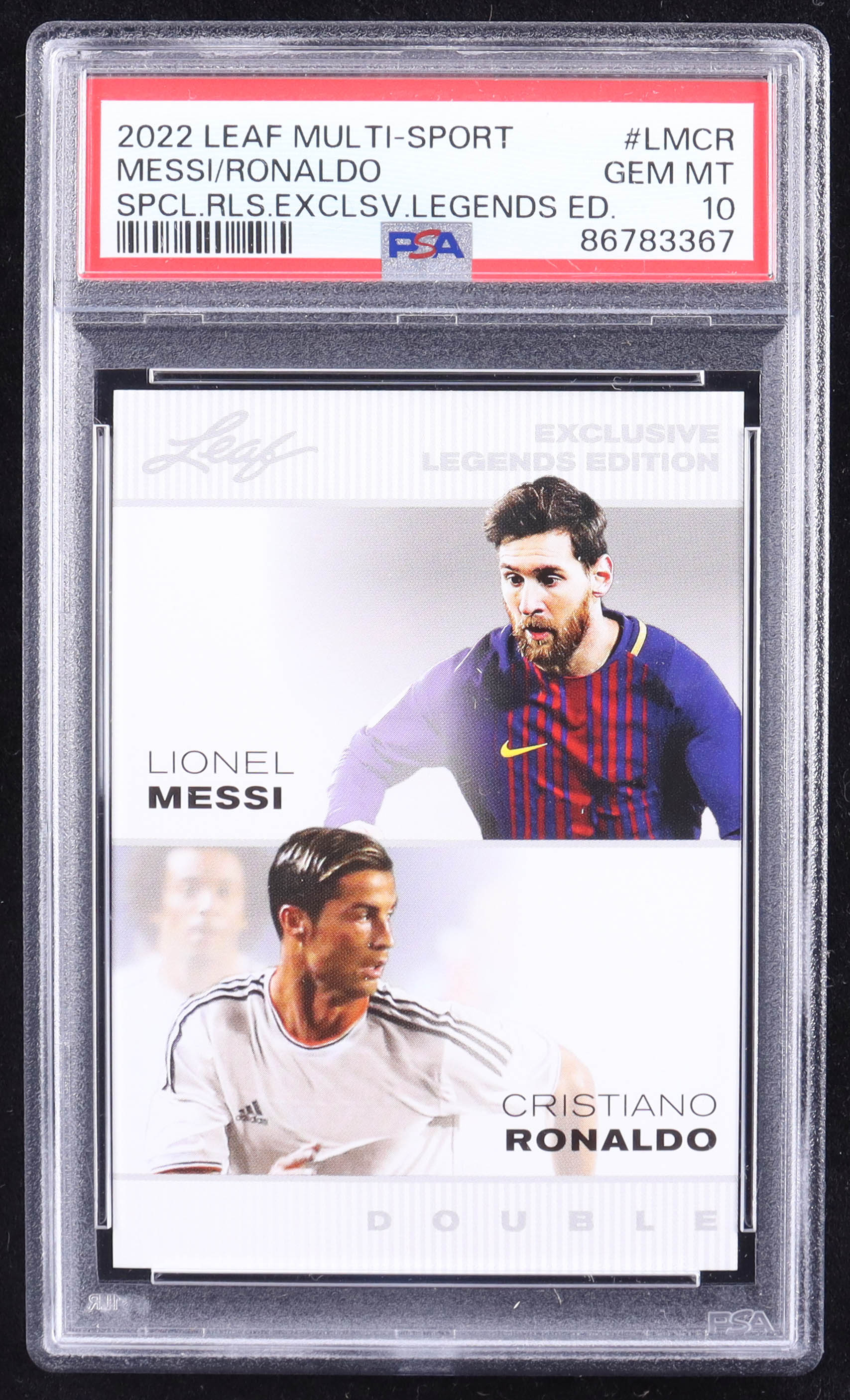 Lionel Messi / Cristiano Ronaldo 2022 Leaf Special Release Exclusive Legends Edition Double #LMCR (PSA 10)