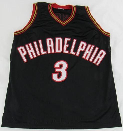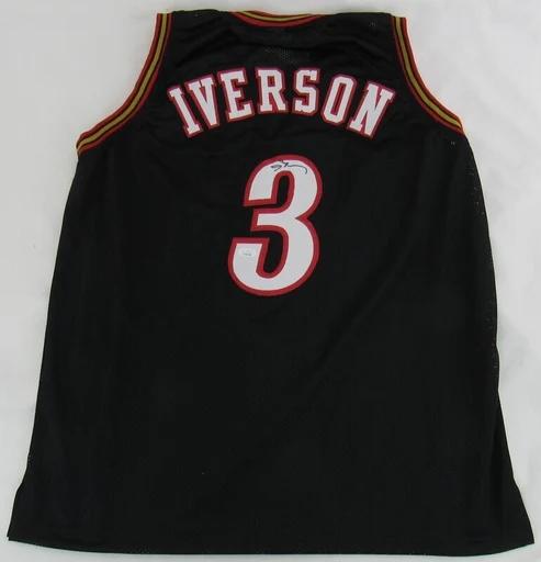 Custom style jersey with everything sewn on, size XL. Hand-signed by Allen Iverson (HOF).