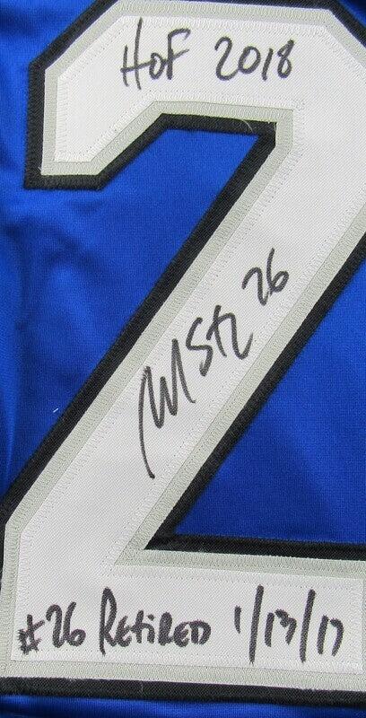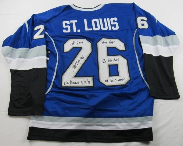 Custom style jersey. Hand-signed and inscribed by Martin St. Louis (HOF).