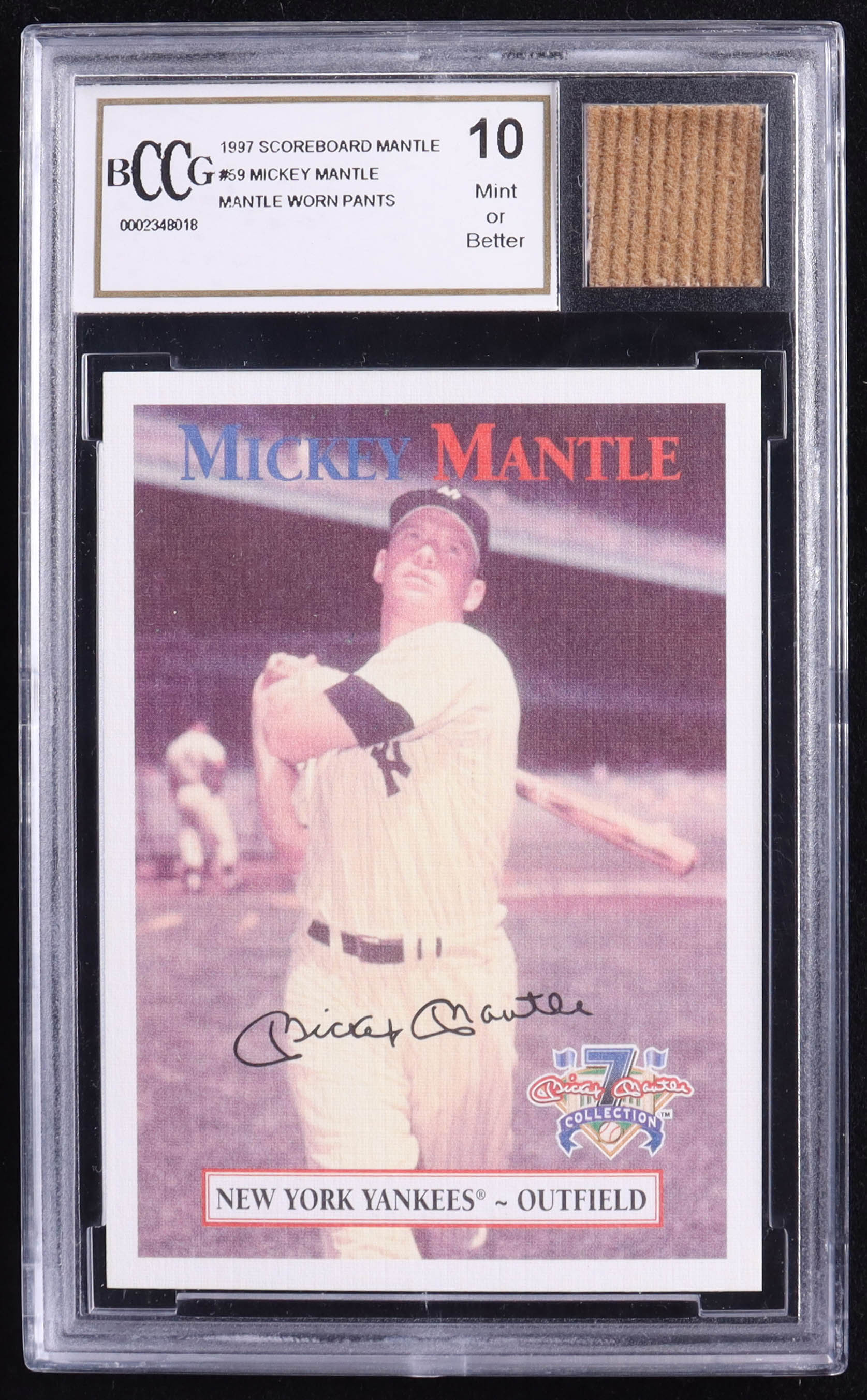 Mickey Mantle 1997 Scoreboard Mantle #59 / 1959 Trading Card with Game-Worn Pants Piece (BCCG 10)