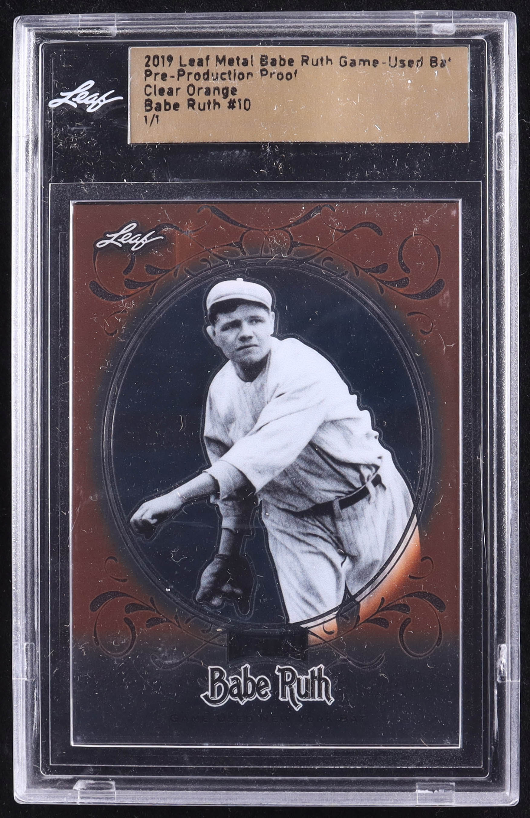 Babe Ruth 2019 Leaf Metal Babe Ruth Game-Used Bat Clear Orange Pre-Production Proof #10 #1/1 (Leaf)