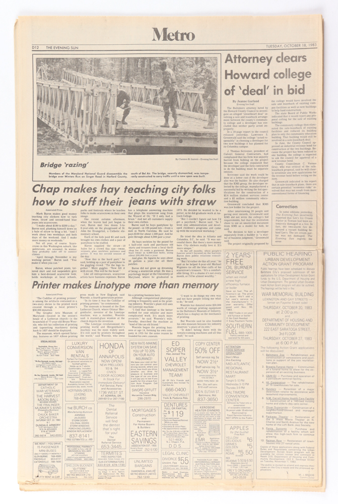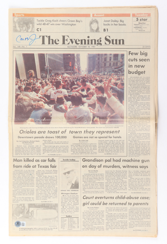 Newspaper section dated October 18, 1983 has been hand-signed by Cal Ripken Jr. (Baltimore Orioles, HOF).