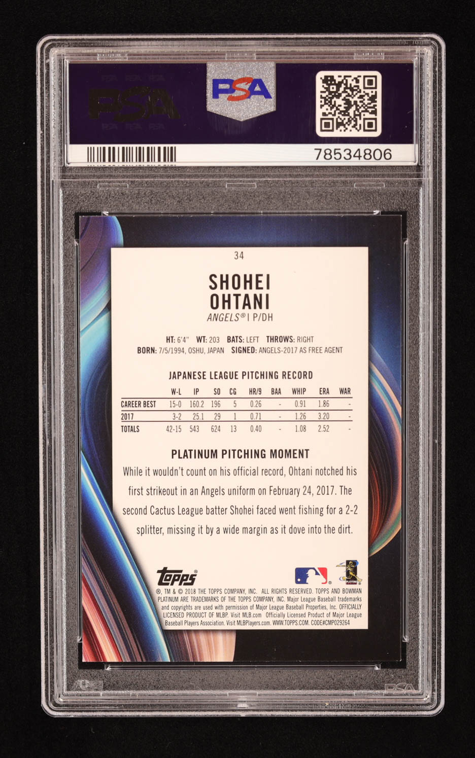 Shohei Ohtani 2018 Bowman Platinum #34 RC (PSA 9)