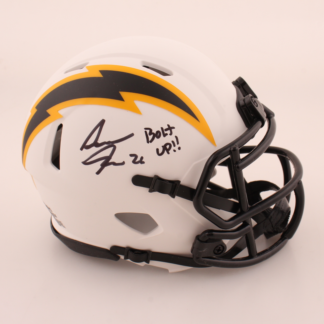 Asante Samuel Jr. Signed Chargers Lunar Eclipse Alternate Speed Mini Helmet Inscribed "Bolt Up!" (Beckett)