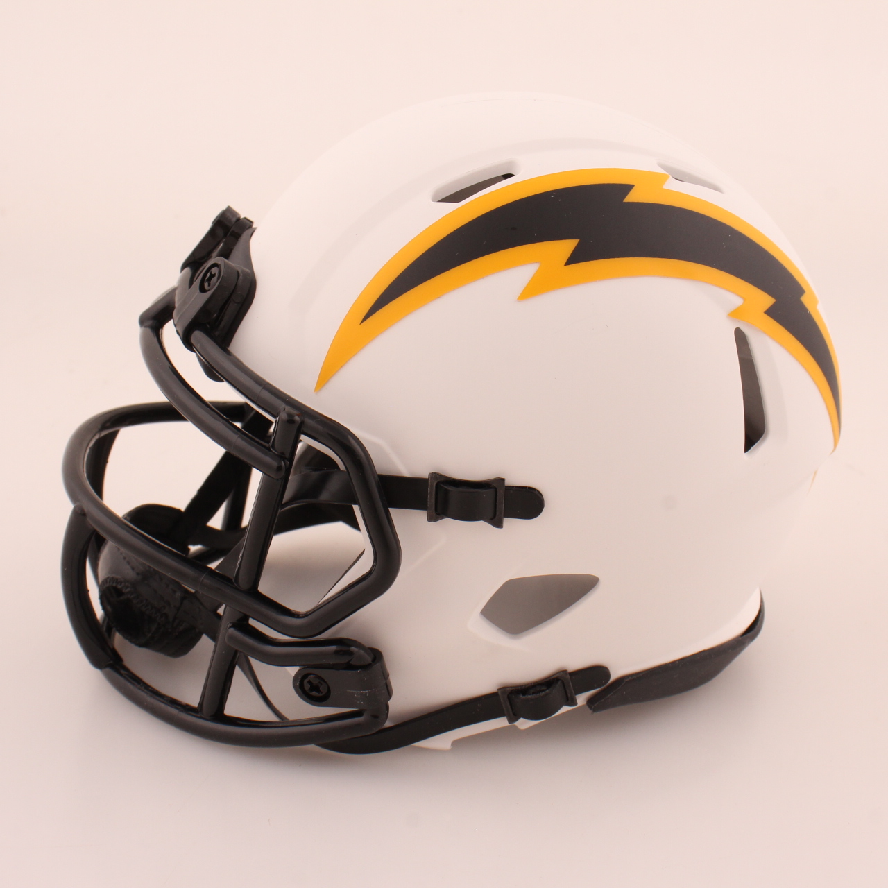 Riddell Los Angeles Chargers Lunar Eclipse Alternate speed mini helmet. Hand-signed and inscribed by Asante Samuel Jr.