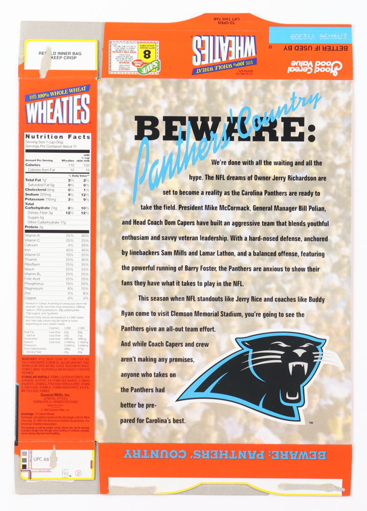Kerry Collins Signed Panthers "Wheaties" Cereal Box (Beckett)