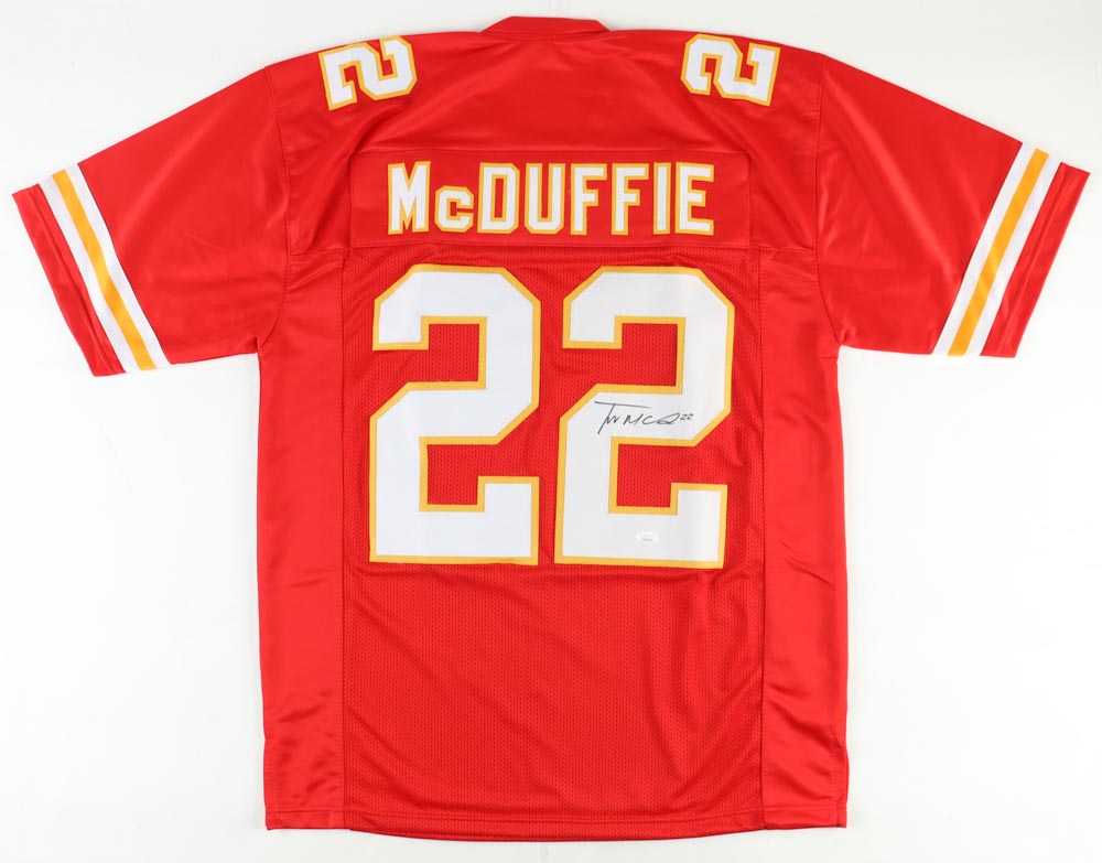 Custom jersey with everything sewn on, size XL. Has been hand-signed by Trent McDuffie.