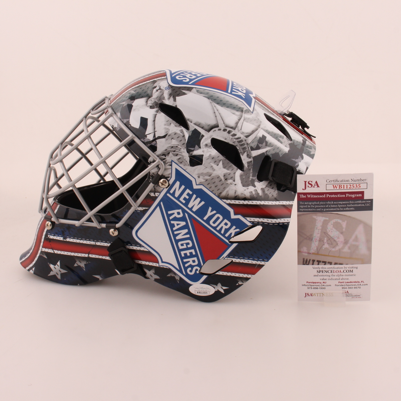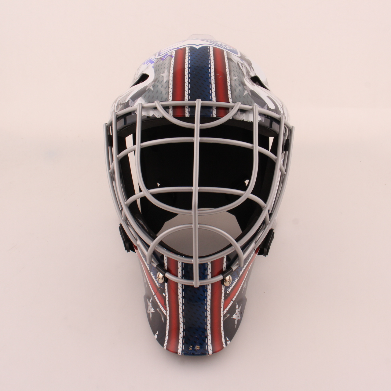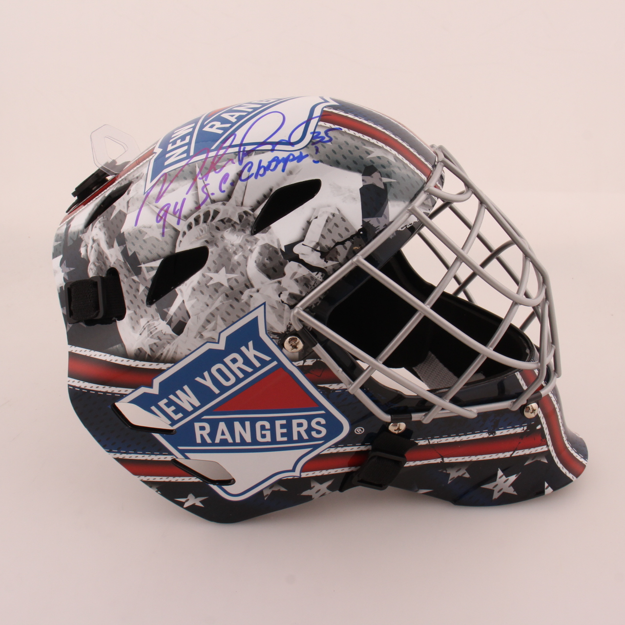 Franklin New York Full-Size Rangers goalie helmet. Hand-signed and inscribed by Mike Richter (HOF).