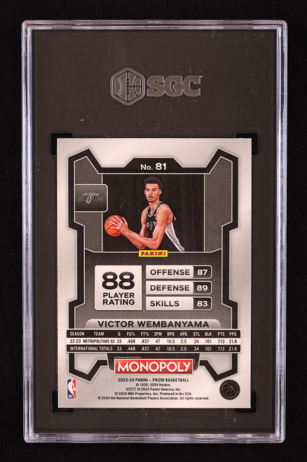 Victor Wembanyama 2023-24 Panini Prizm Monopoly #81 RC (SGC 10)