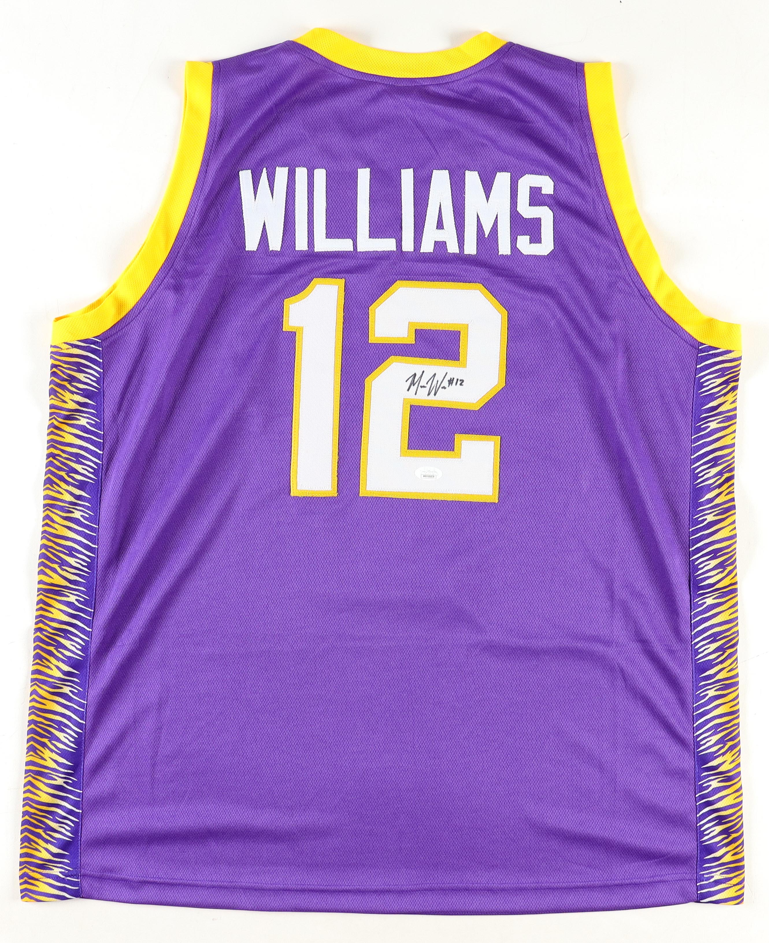 Custom basketball jersey. Everything sewn on, size XL. Hand-signed by Mikaylah Williams.