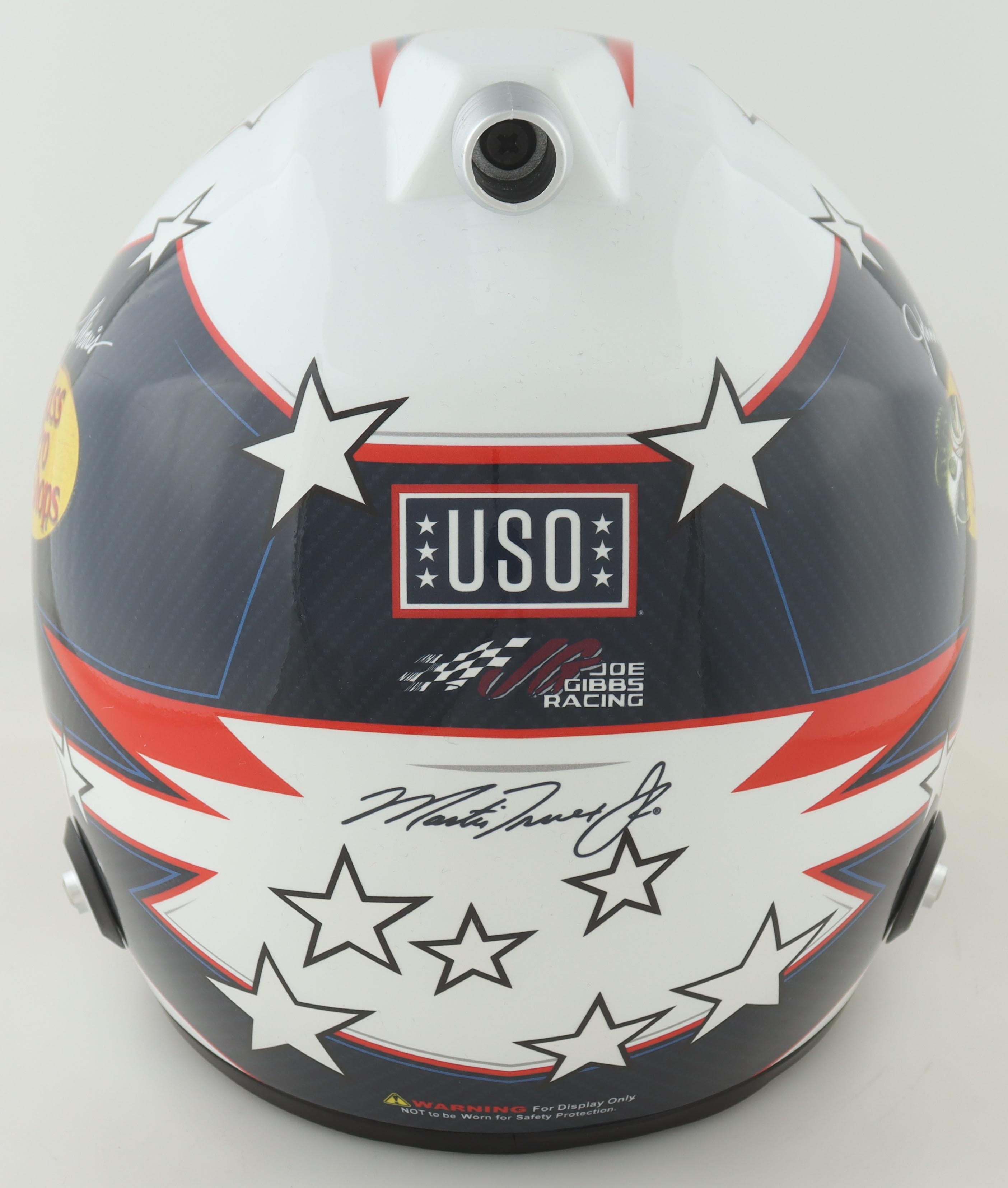 Full-size replica NASCAR helmet is hand-signed on the visor by Martin Truex Jr.