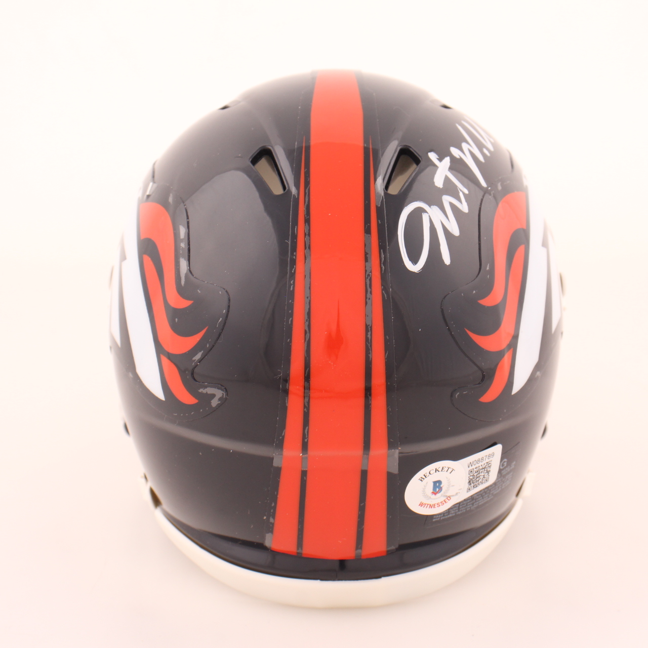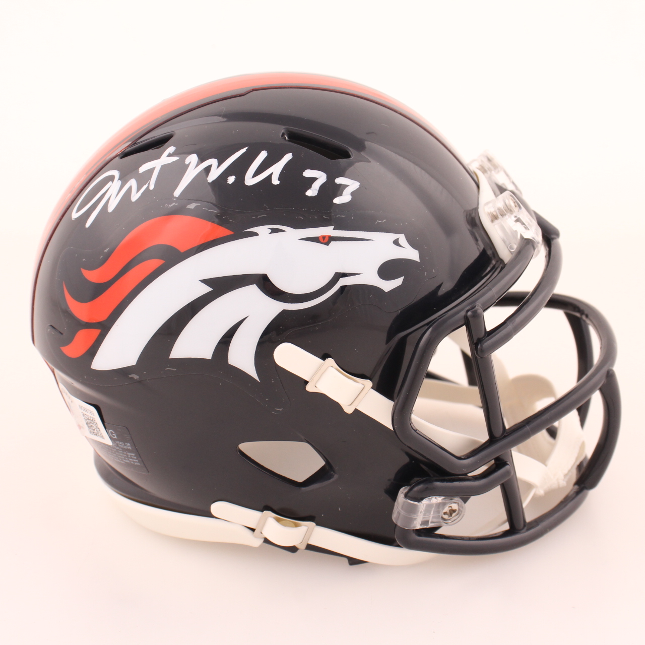 Riddell Denver Broncos Speed mini helmet. Hand-signed by Javonte Williams.