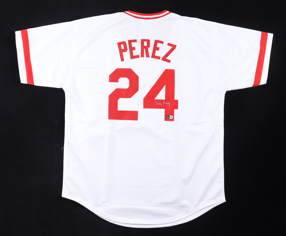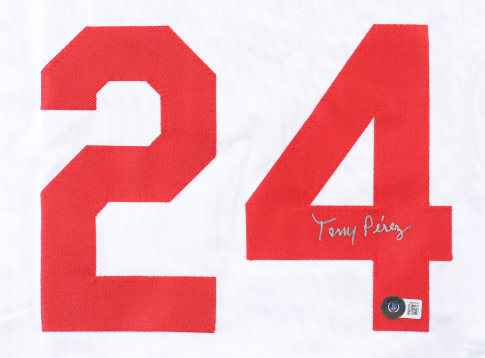 Custom jersey. Everything sewn on, size XL. Has been hand-signed by Tony Perez (HOF).
