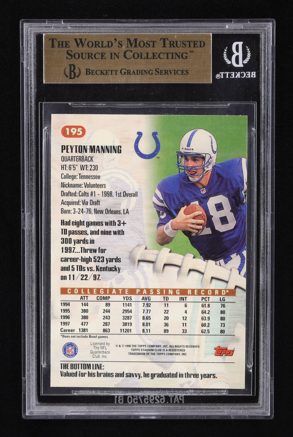 Peyton Manning 1998 Stadium Club #195 RC (BGS 9.5)