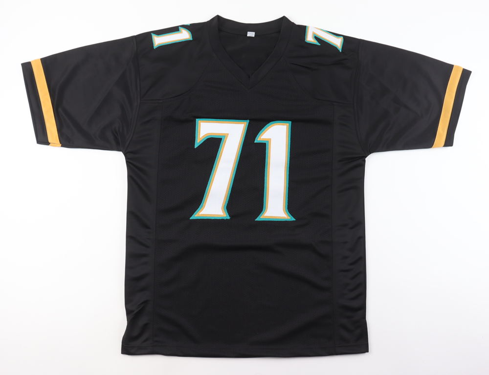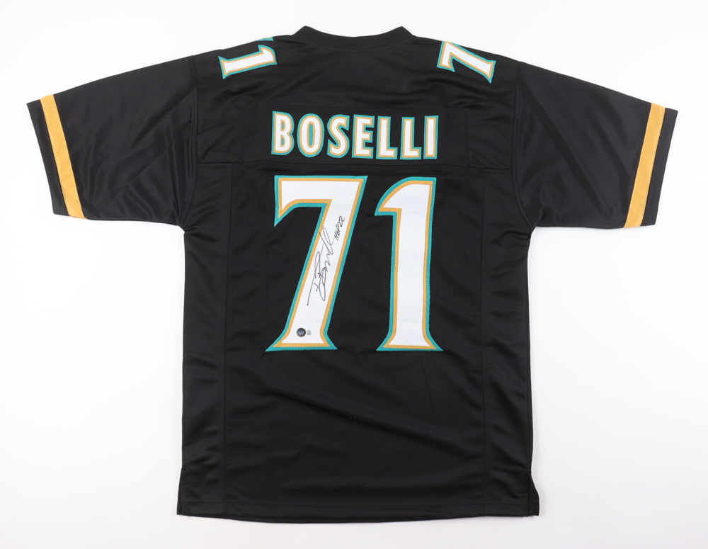 Custom jersey. Everything sewn on, size XL. Hand-signed and inscribed by Tony Boselli (HOF).