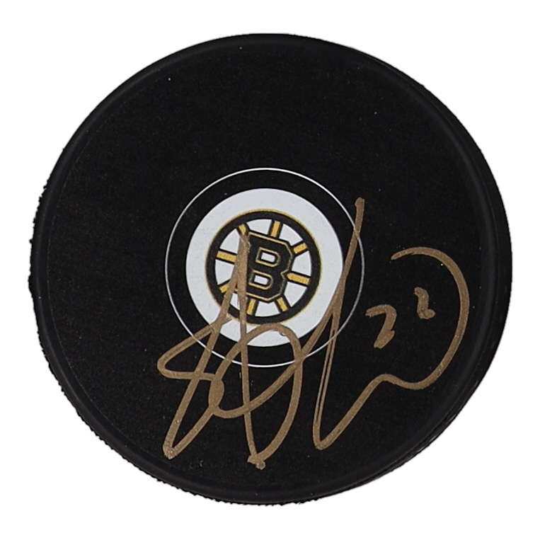Boston Bruins logo hockey puck. Hand-signed by Shawn Thornton.