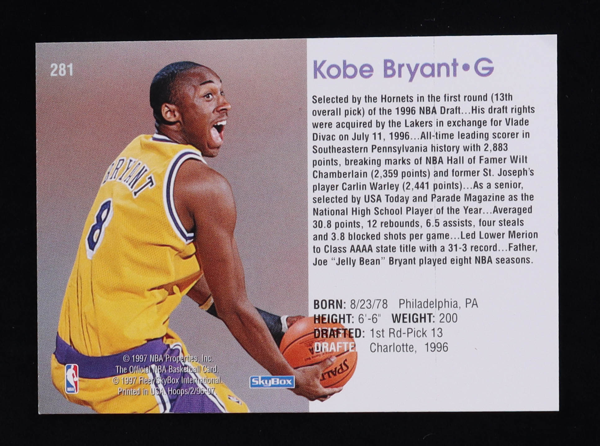 Kobe Bryant 1996-97 Hoops #281 RC