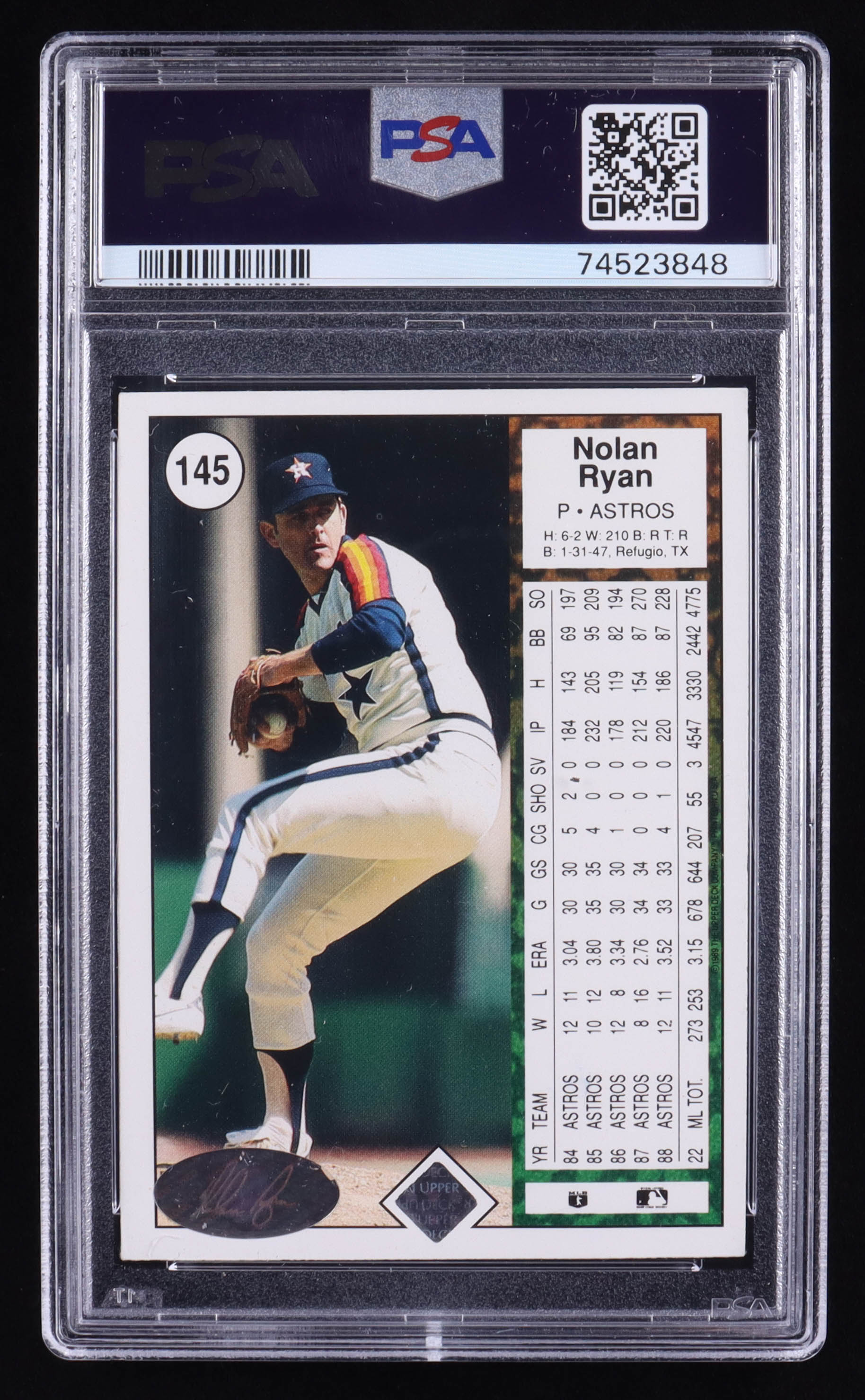 Nolan Ryan Signed 1989 Upper Deck #145 3X Inscribed "The Ryan Express" (PSA | Autograph Grade 10)