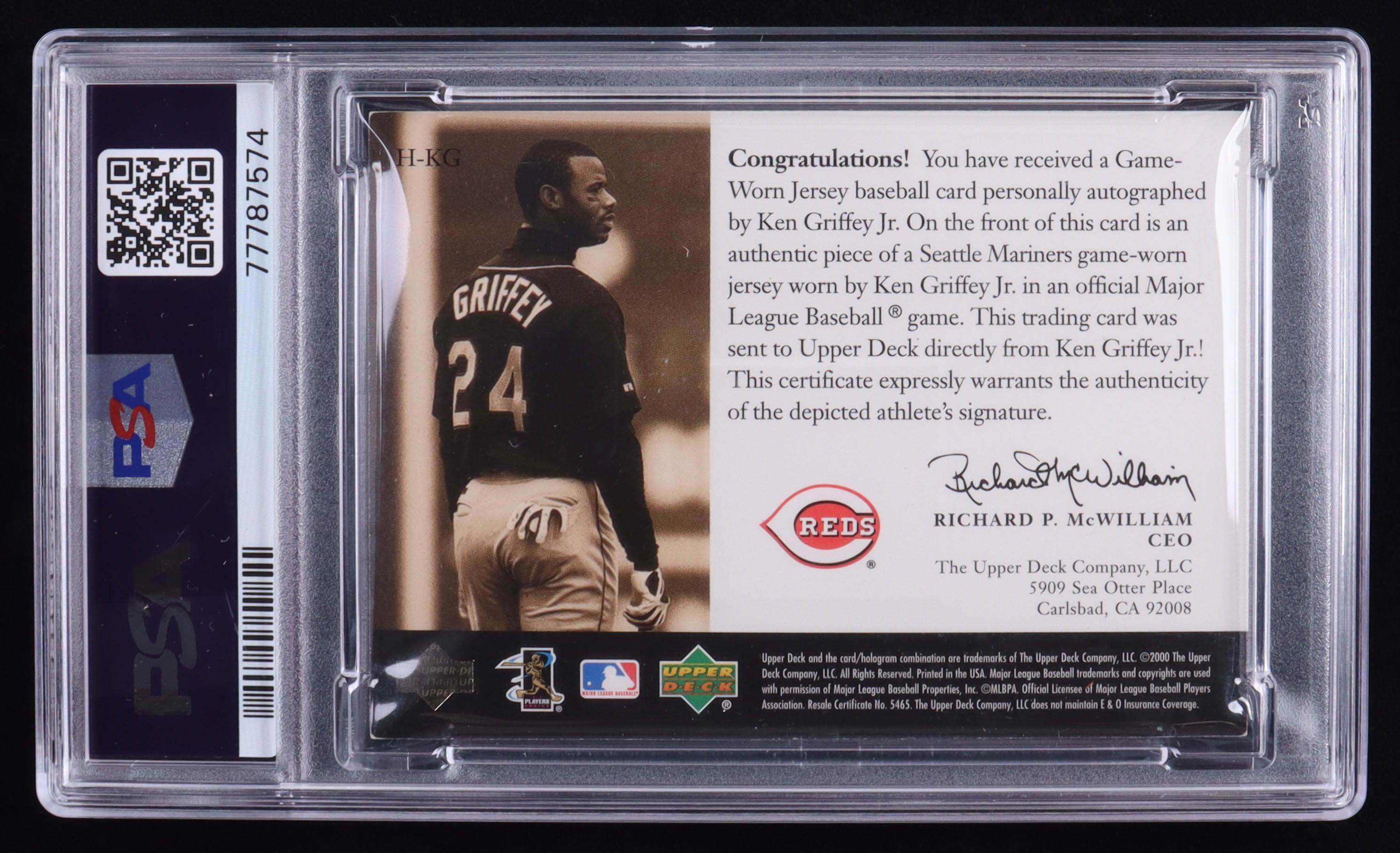 Ken Griffey Jr. 2000 Upper Deck Game Jersey Autograph #HKG Reds (PSA 6)