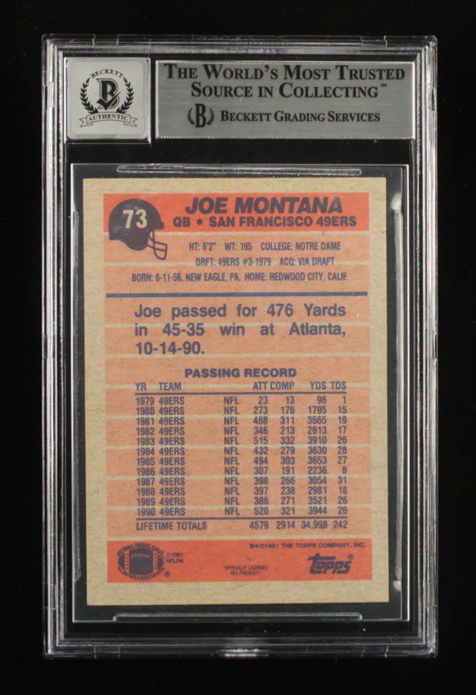 Joe Montana Signed 1991 Topps #73 (BGS | Auto 10)