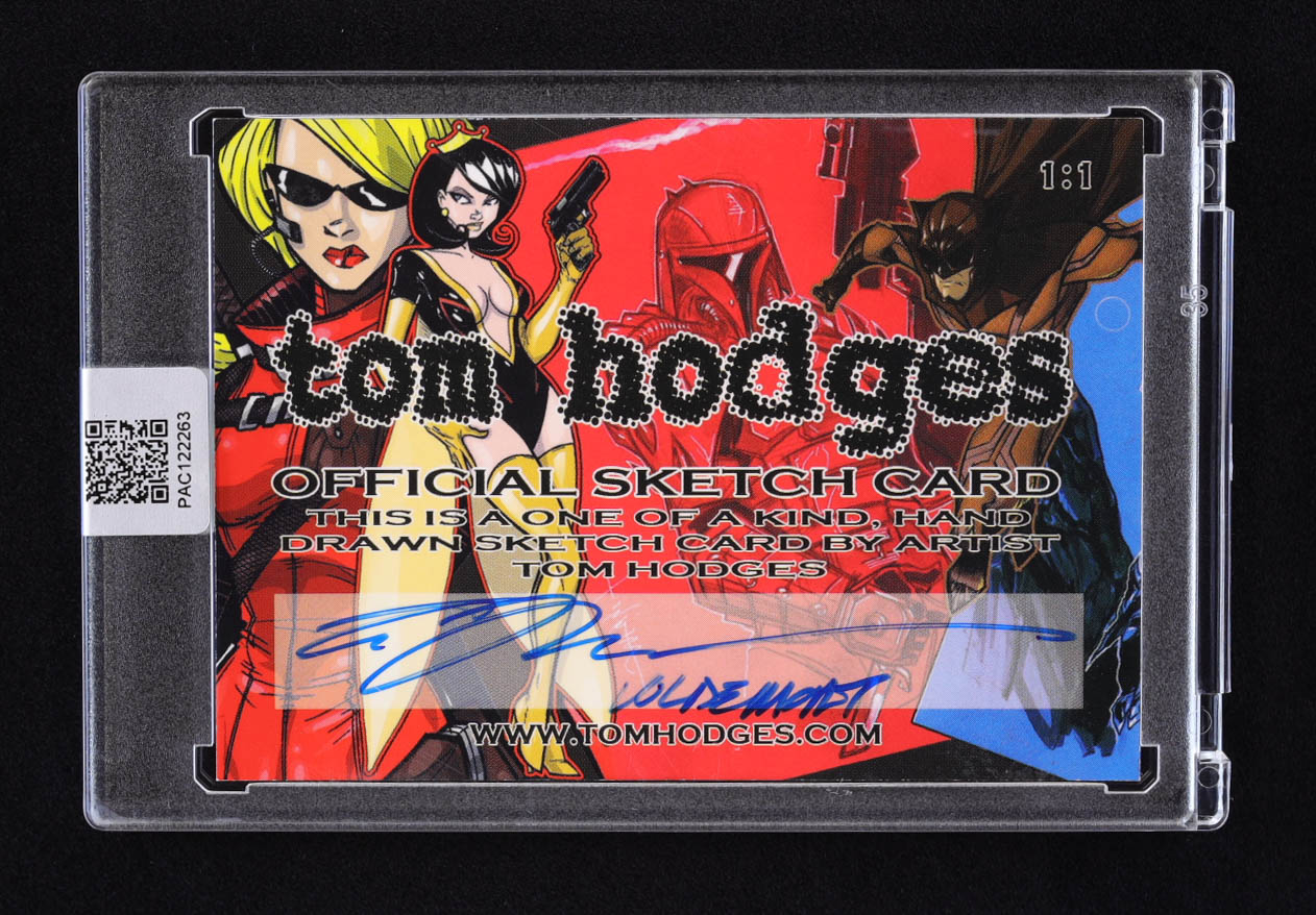 This original sketch card includes original art by renowned comic book artist, Tom Hodges. Also includes a character name inscription on the back by the artist.