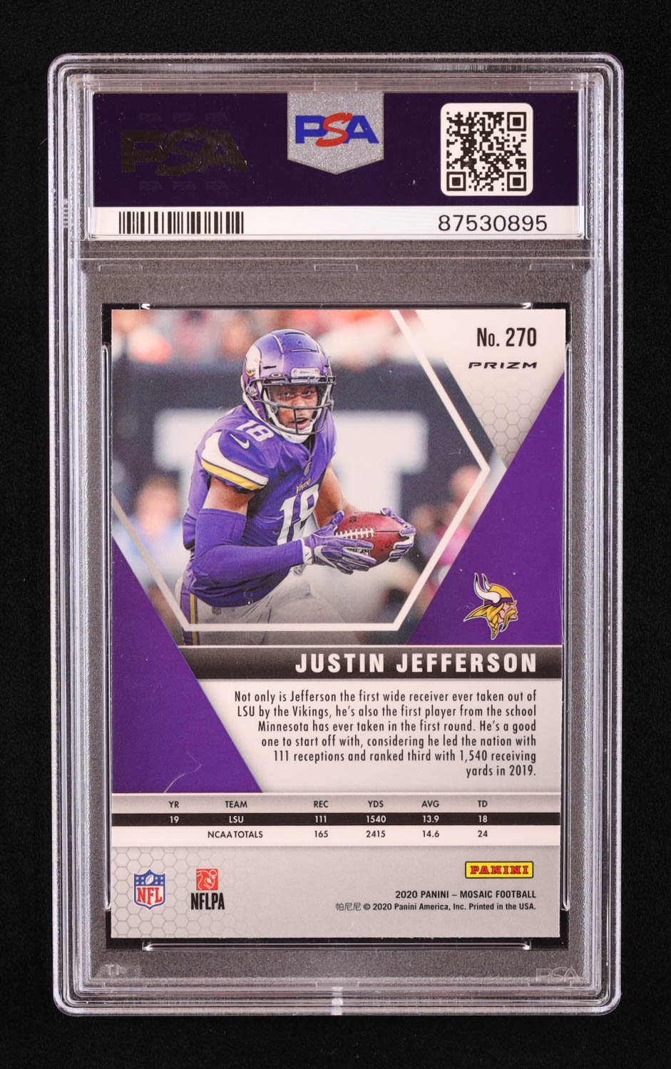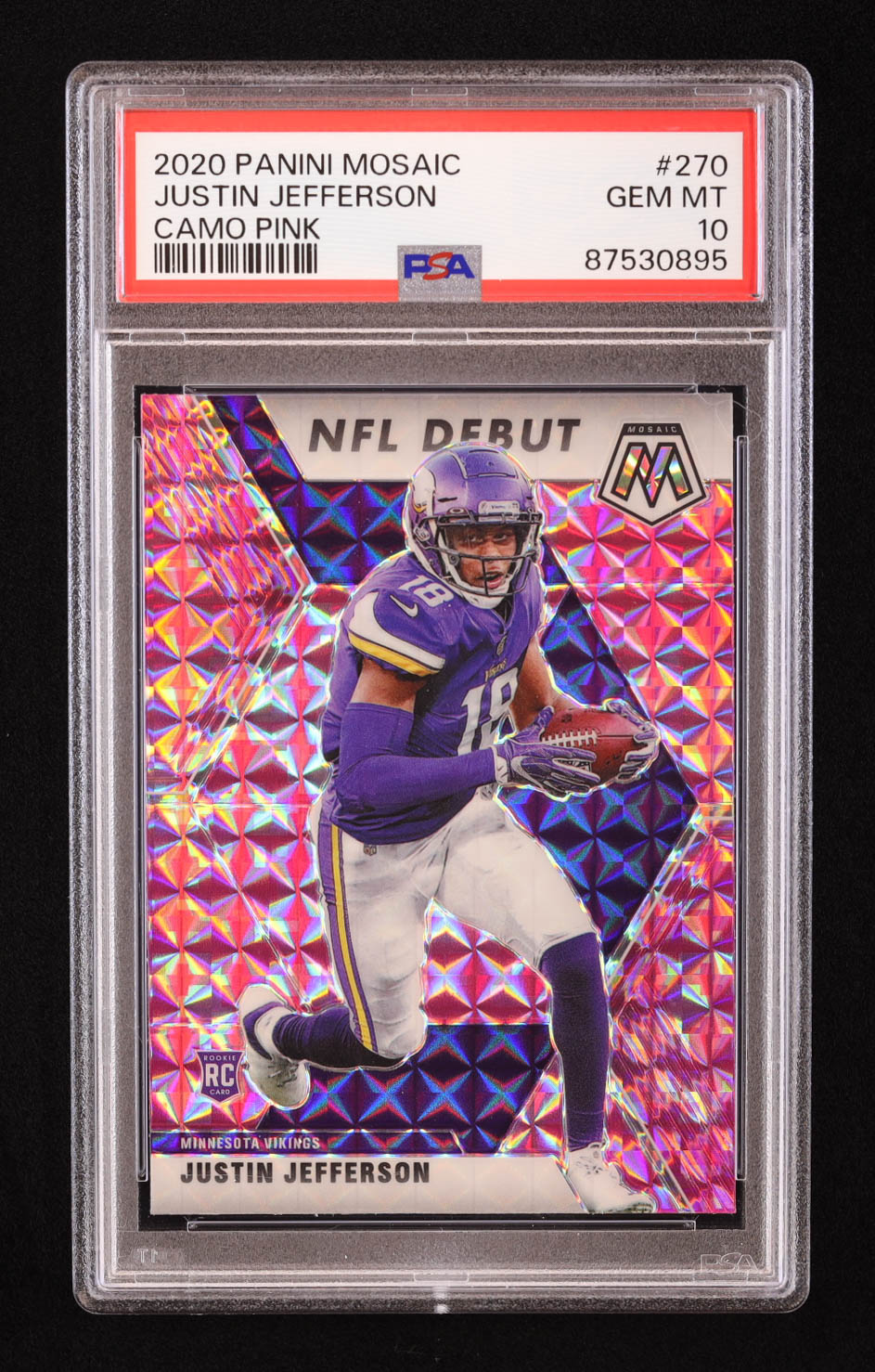 Justin Jefferson 2020 Panini Mosaic Mosaic Camo Pink #270 DEB RC (PSA 10)