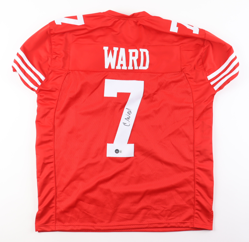 Custom jersey. Everything is sewn on, size XL. Hand-signed by Charvarius Ward.