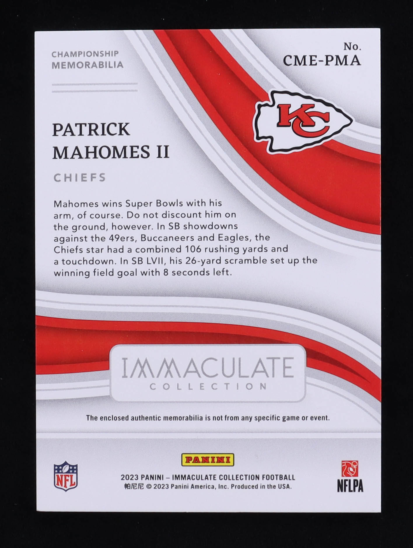 Patrick Mahomes II 2023 Immaculate Collection Championship Memorabilia #1 #96/99
