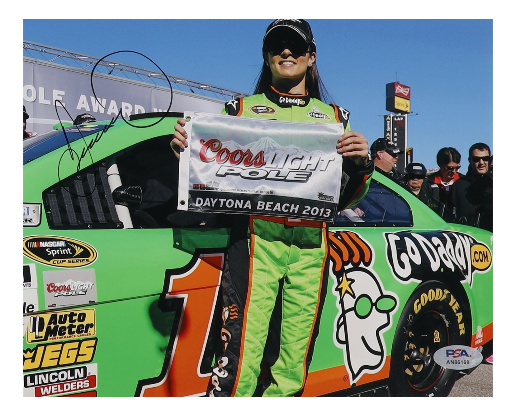 Photo measures 8" x 10" in size and has been hand-signed by Danica Patrick.