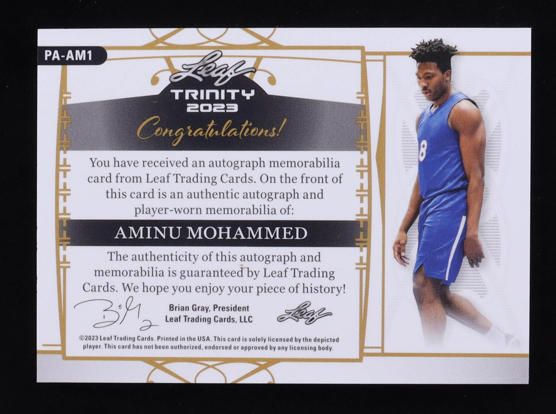 Aminu Mohammed 2023 Leaf Trinity Patch Autographs Holo Platinum #PAAM1 RC #25/25