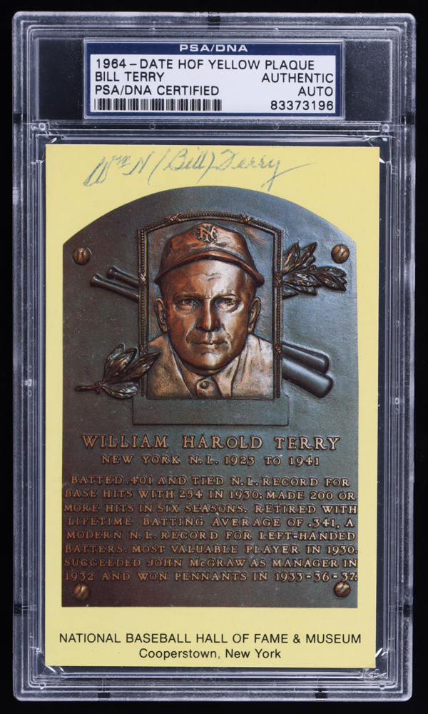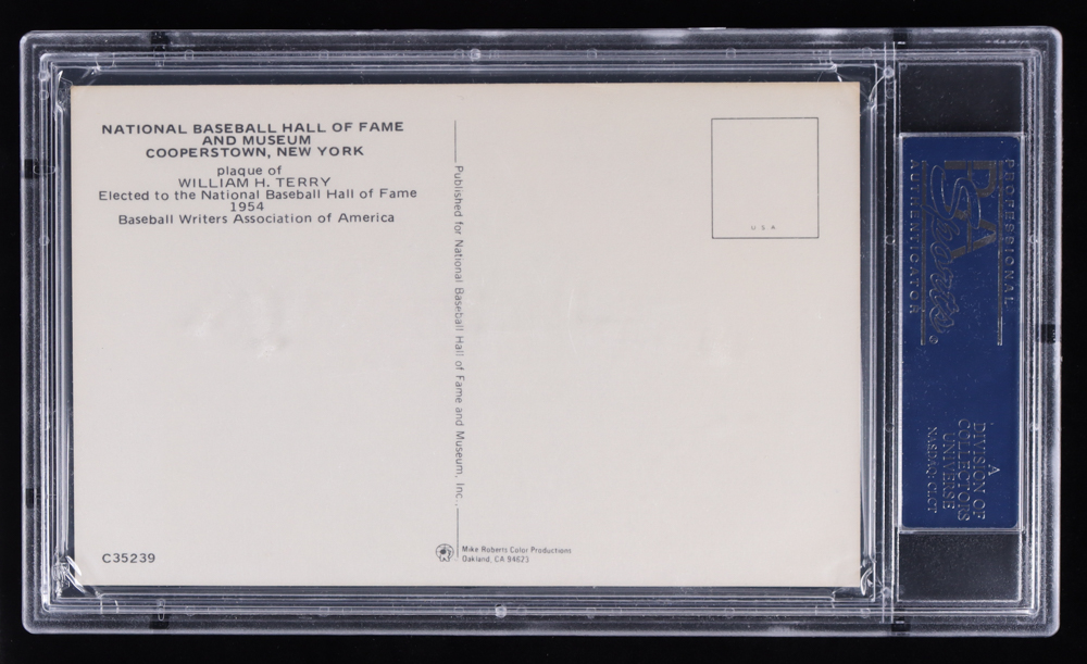 William "Bill" Terry Signed Baseball Hall of Fame Plaque Postcard (PSA)
