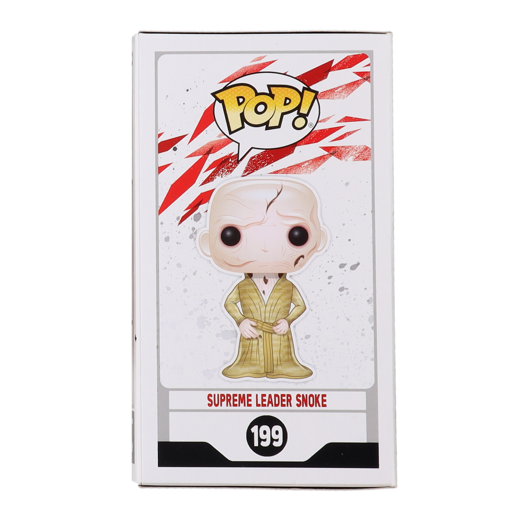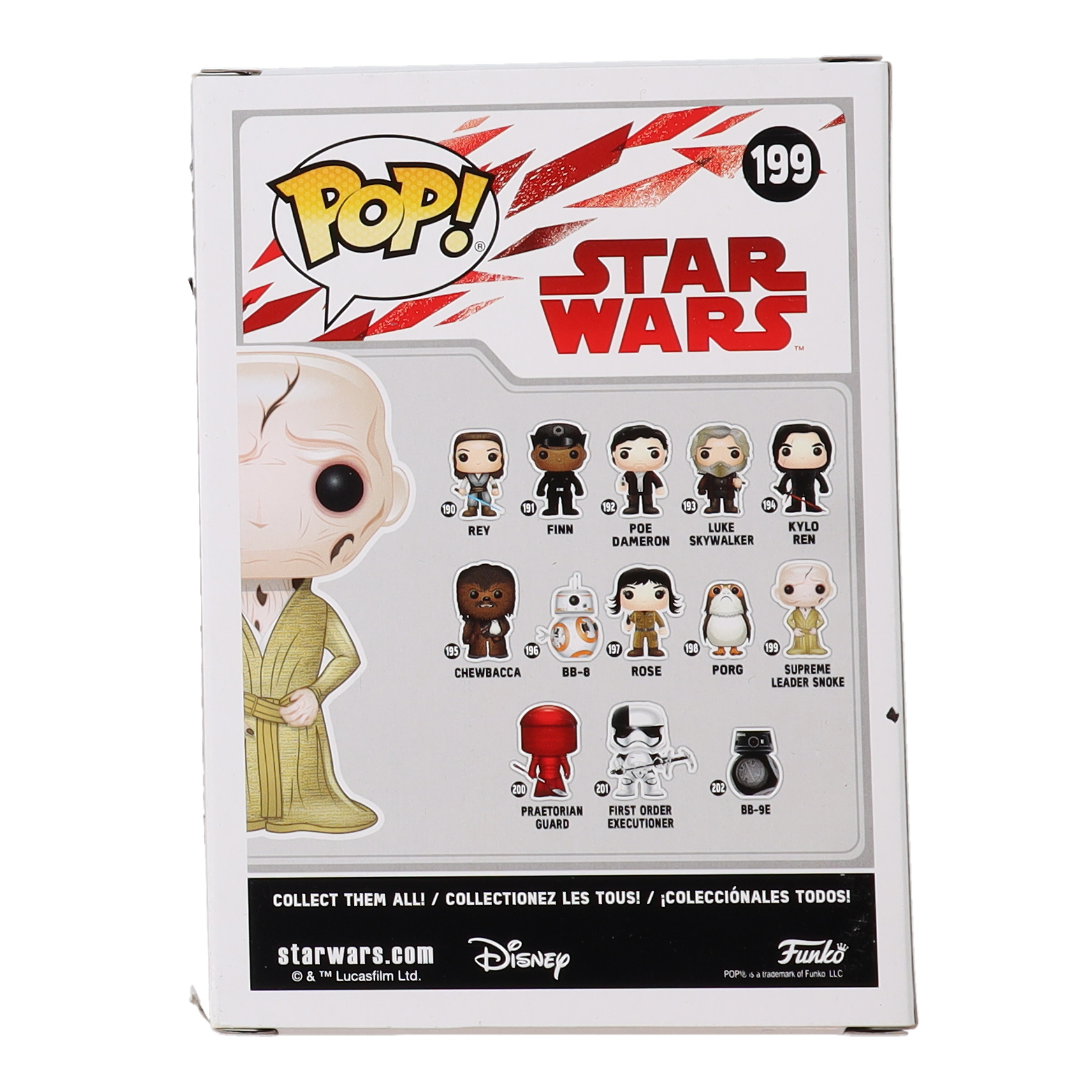 Funko Pop! figure measures approximately 4" tall and has been hand-signed on the packaging by Andy Serkis (Supreme Leader Snoke).
