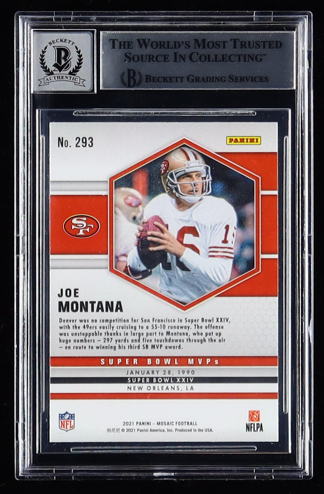 Joe Montana Signed Sticker On 2021 Panini Mosaic #293 MVP (BGS | Auto 10)