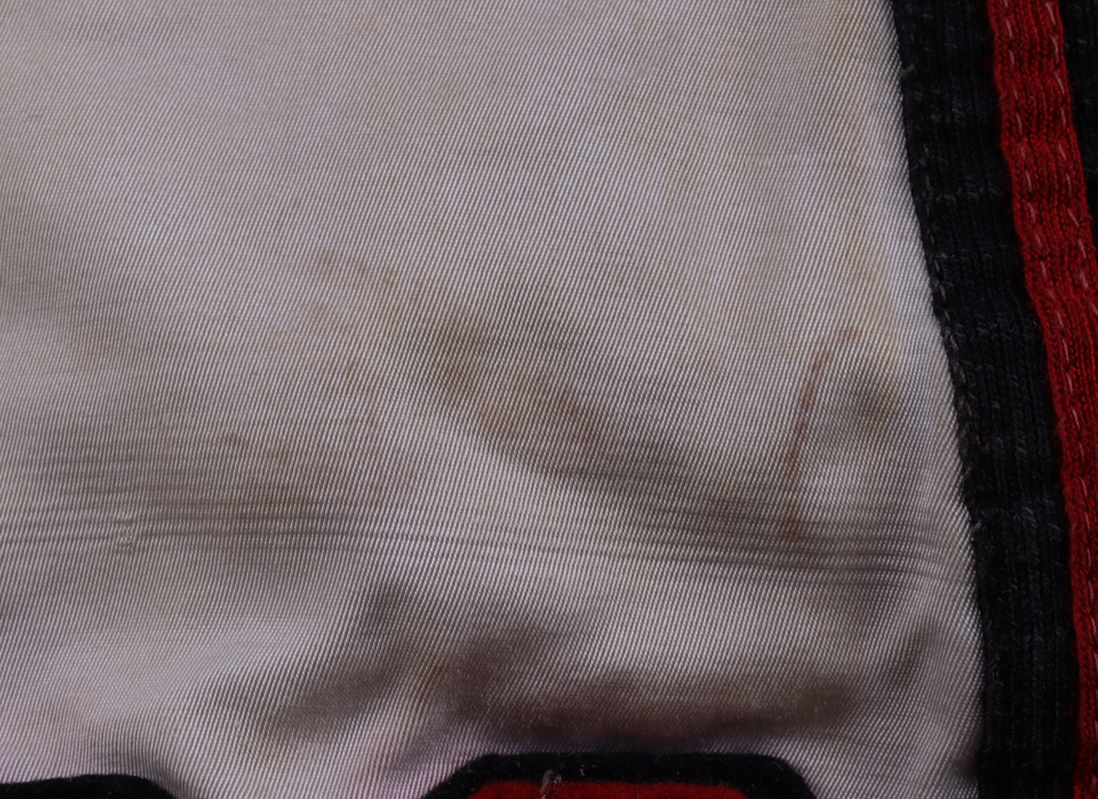 Please see photos for more details regarding the condition of the shorts. Please note, there is staining on the front and back and the shorts are unsigned.