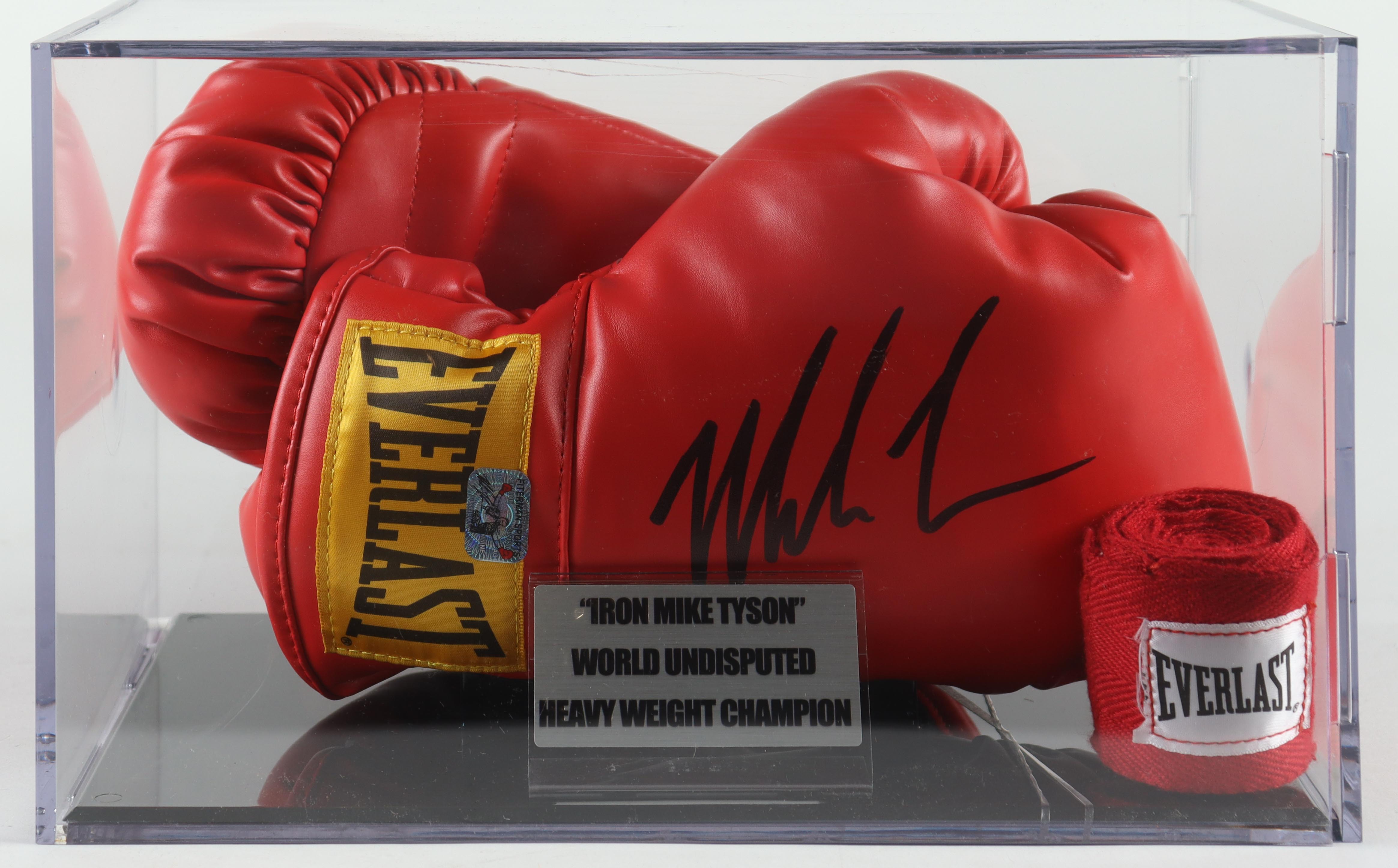 Mike Tyson Signed Pair Of Everlast Boxing Gloves with Display Case & Wrist Wraps (Tyson)