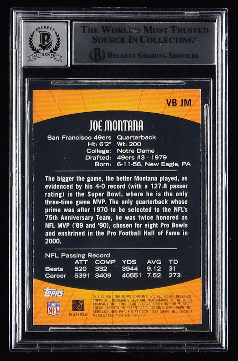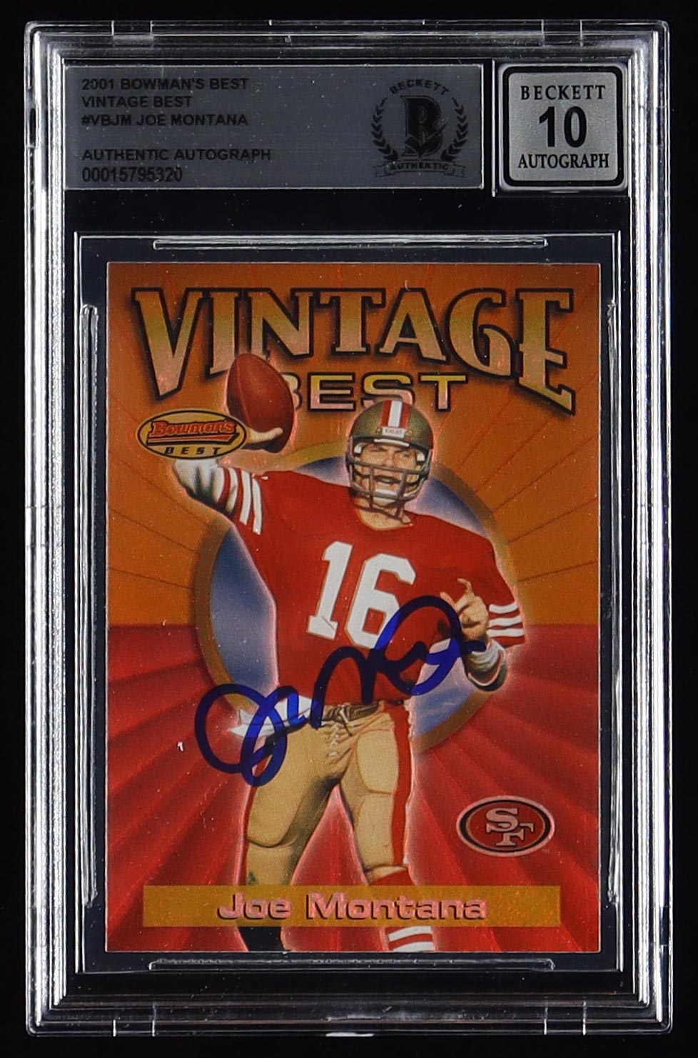 Joe Montana Signed 2001 Bowman's Best Vintage Best #VBJM (BGS | Autograph Graded BGS 10)