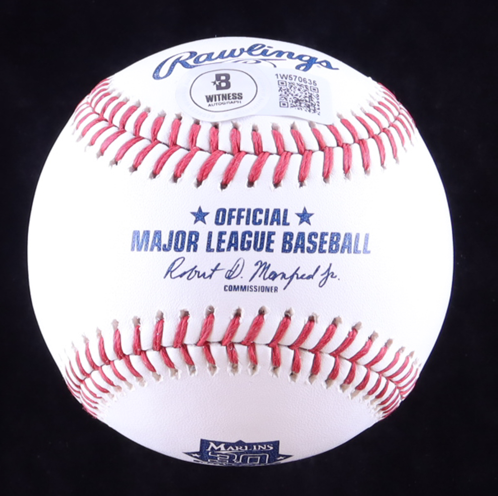 Rawlings Official Major League Miami Marlins 30th Anniversary Baseball. Has been hand-signed and inscribed by Miguel Cabrera (Miami Marlins).