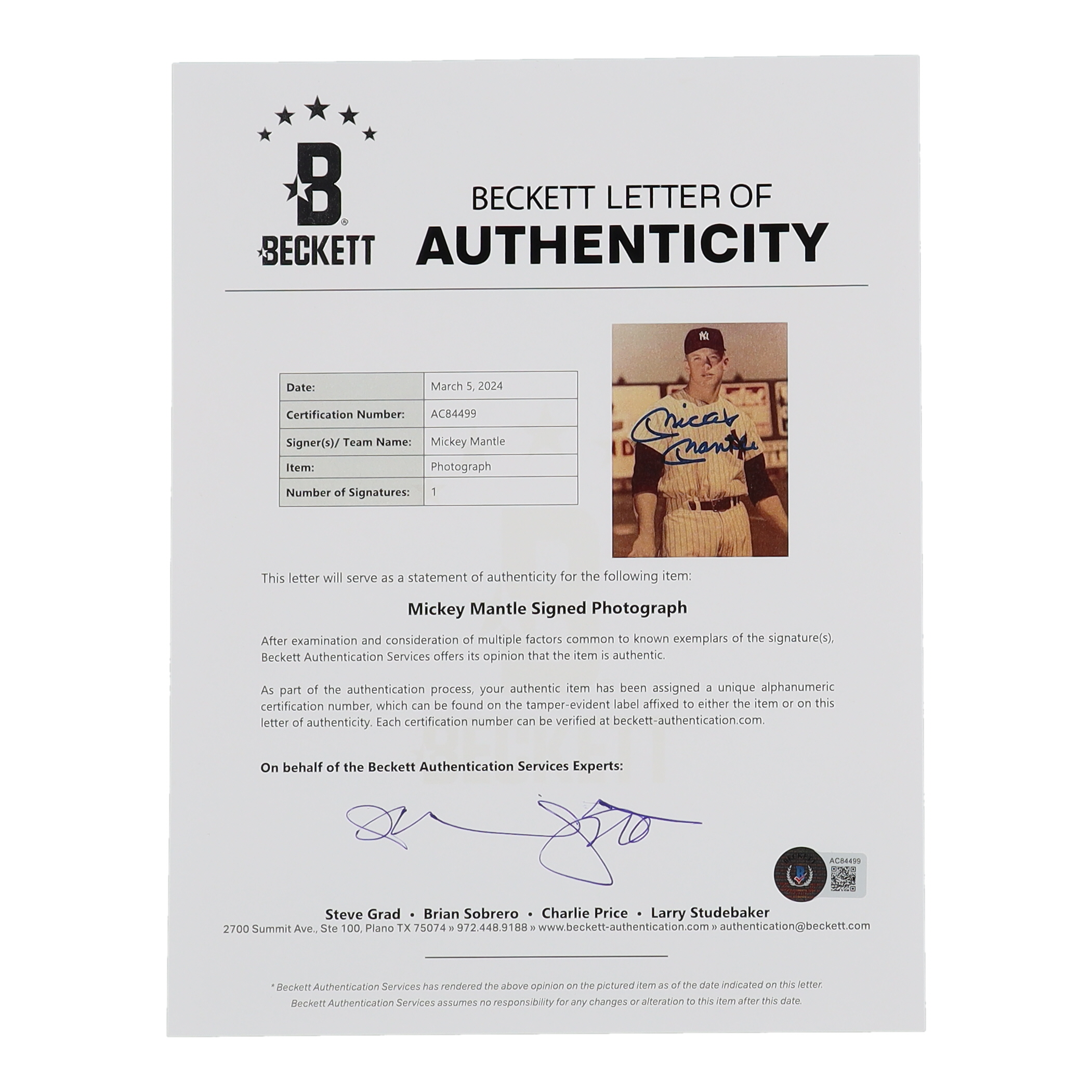 Mickey Mantle Signed Yankees 8x10 Photo (Beckett)