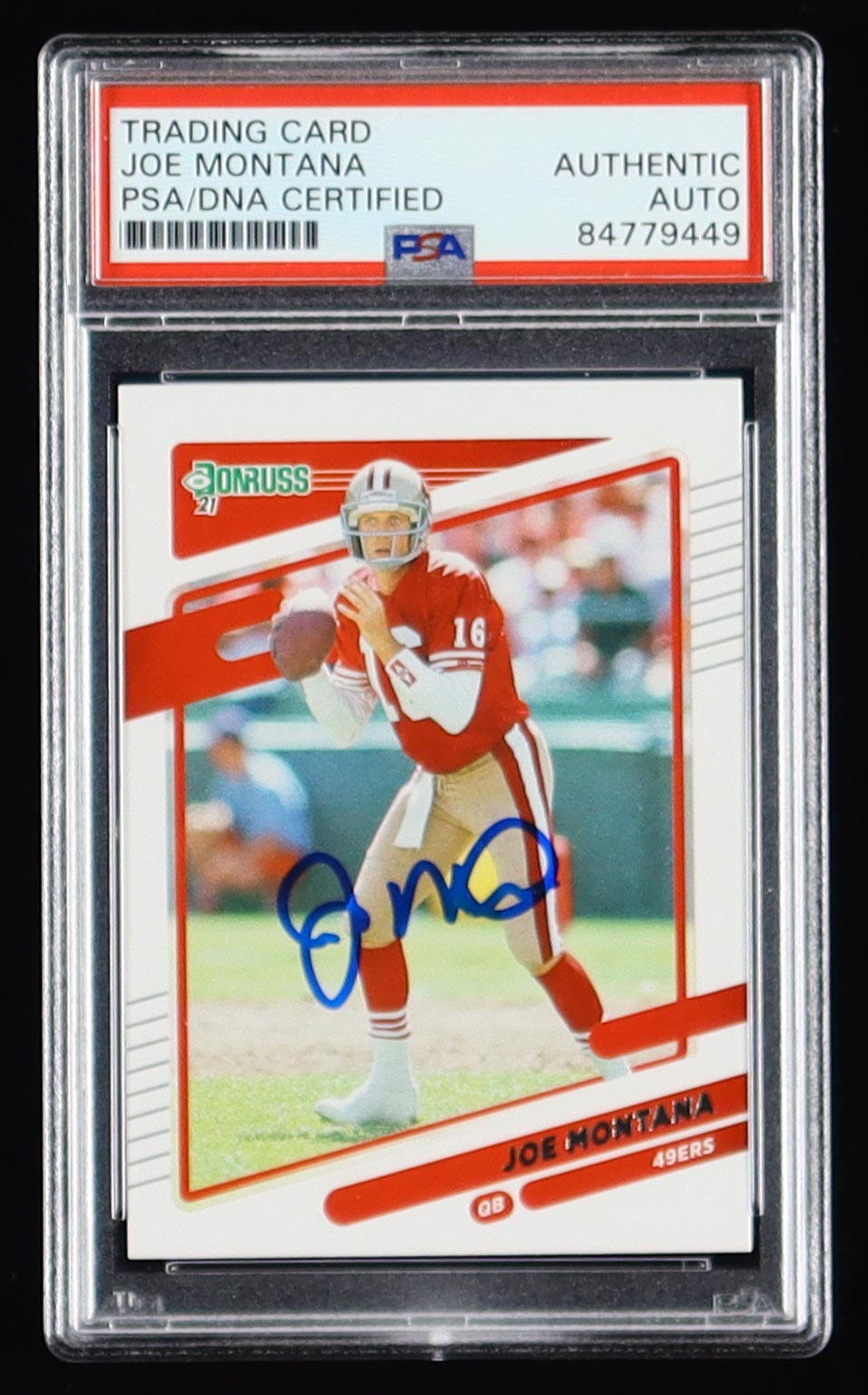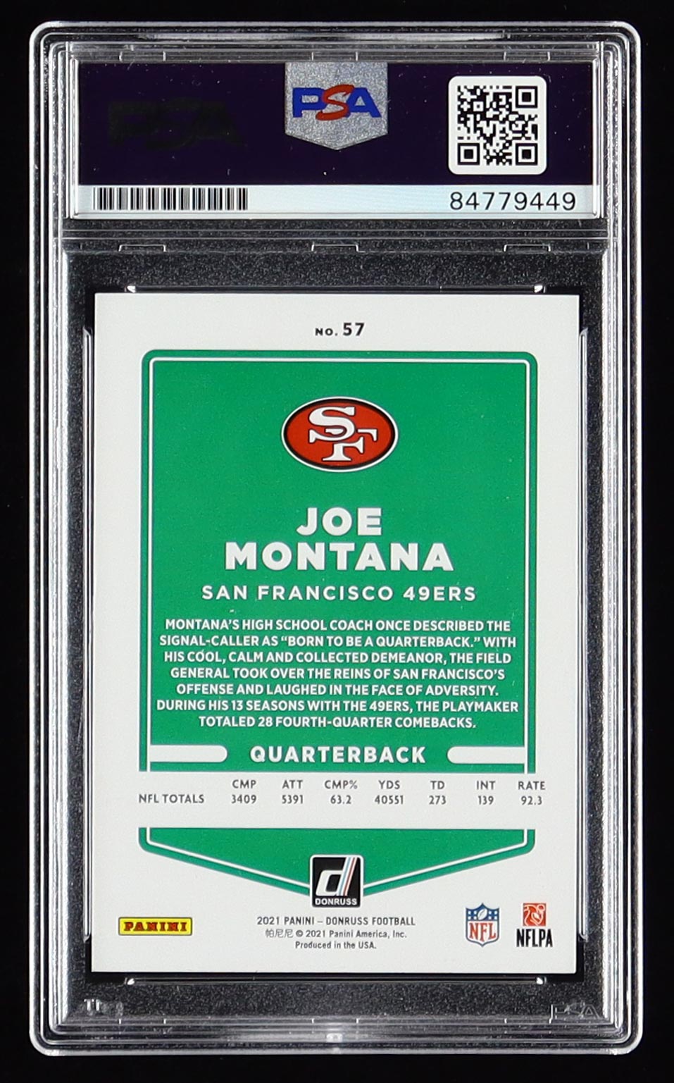 Joe Montana Signed 2021 Donruss Season Stat Line #57 (PSA Encapsulated)