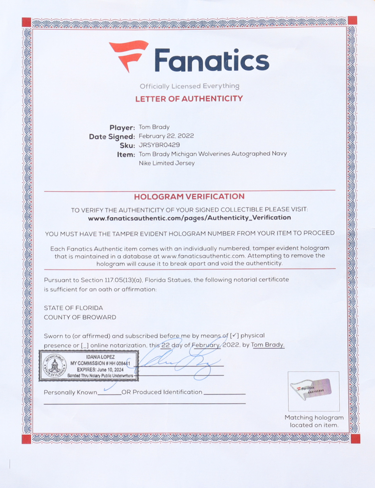 Authentication: Fanatics LOA