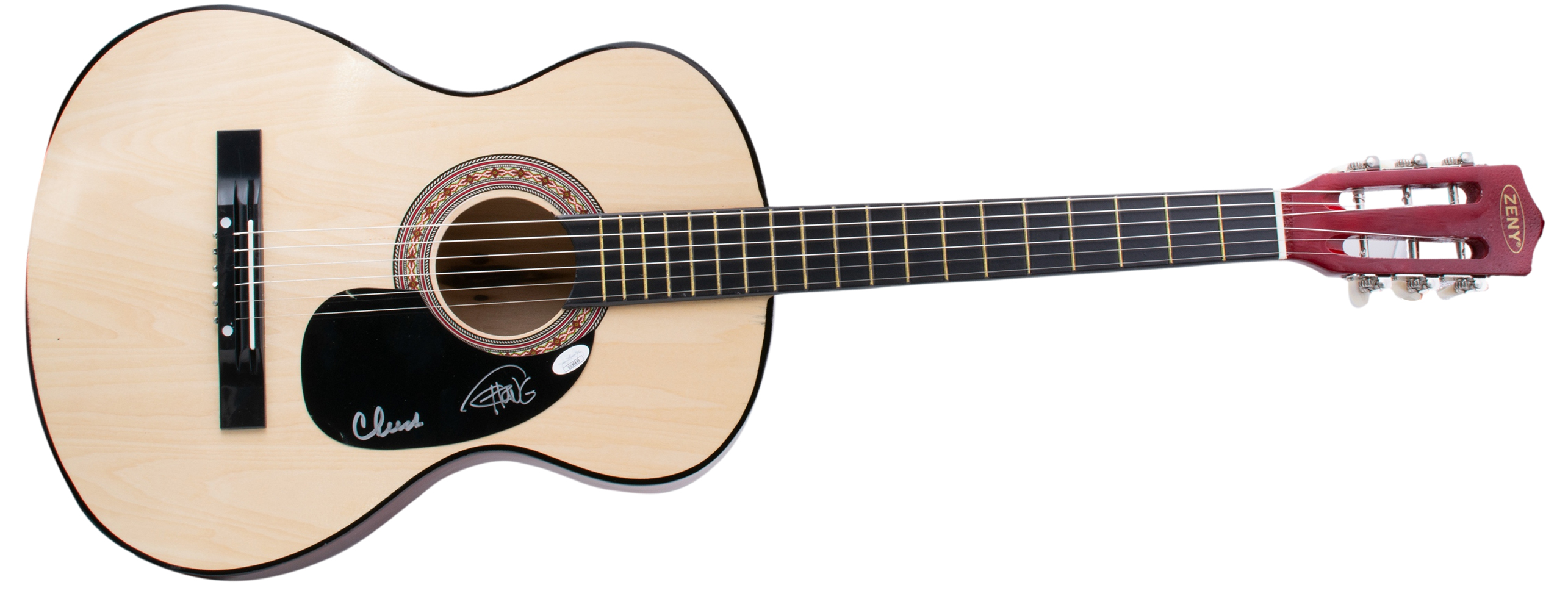 Zeny Acoustic Guitar measures approximately 38" in length and has been hand-signed on the pick-guard by Cheech Marin and Tommy Chong.