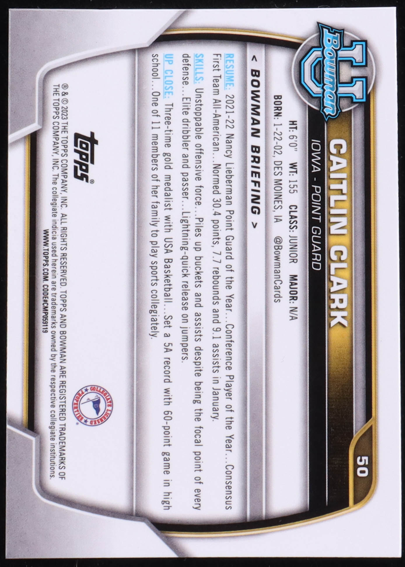 Caitlin Clark 2022-23 Bowman Chrome University #50 RC