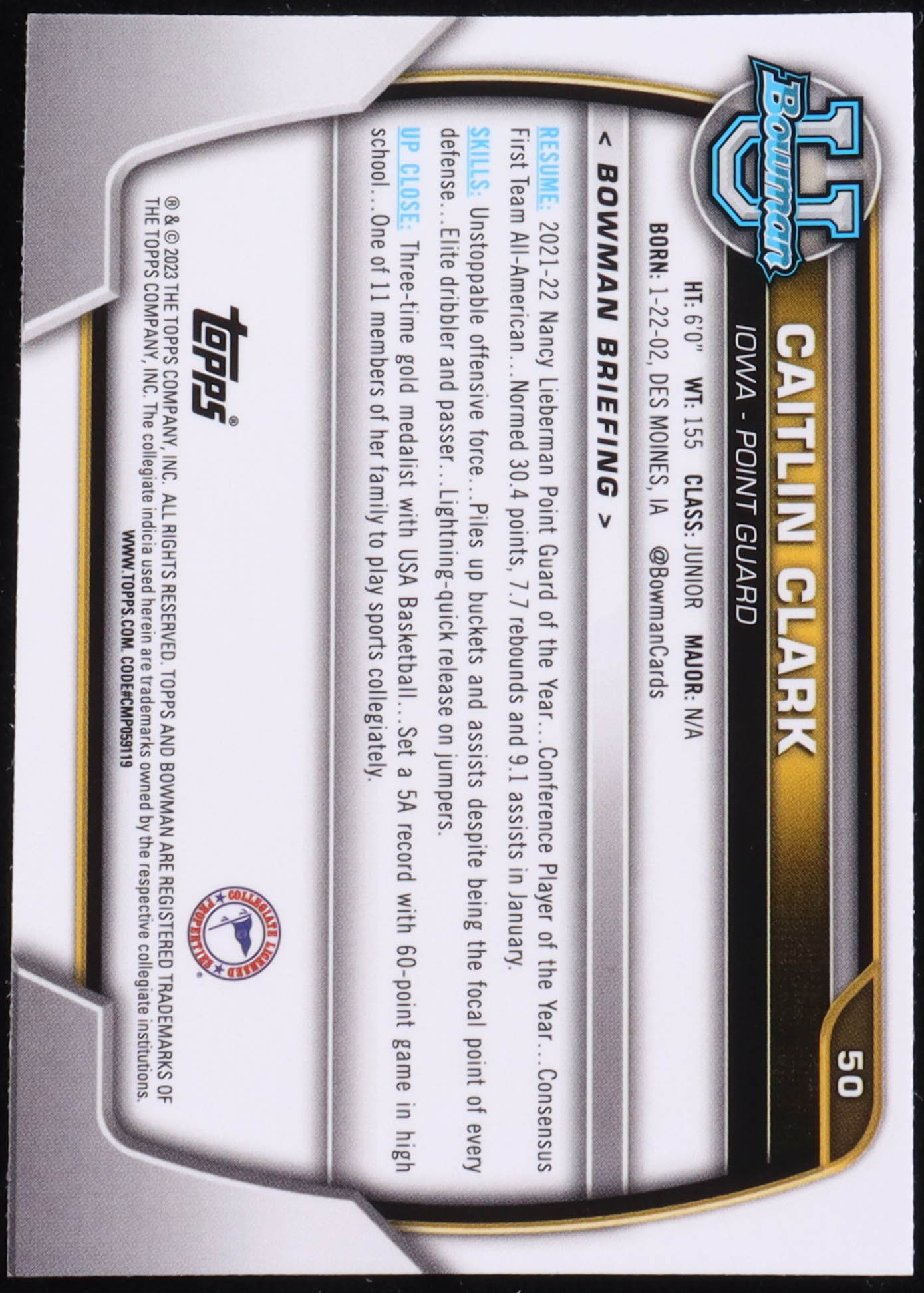 Caitlin Clark 2022-23 Bowman Chrome University #50 RC