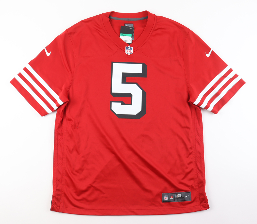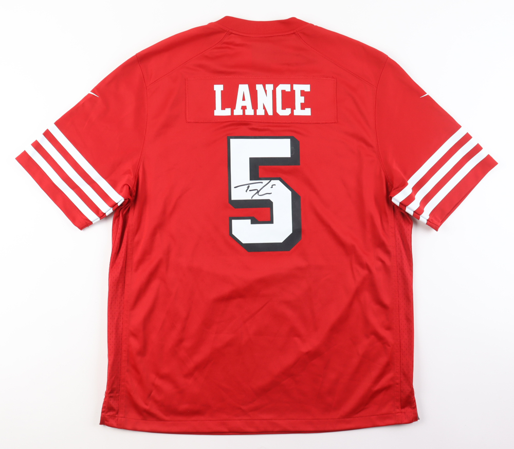 Nike jersey. Everything is printed on, size XL. Hand-signed by Trey Lance (San Francisco 49ers). Please note, there is a stain on the reverse number.