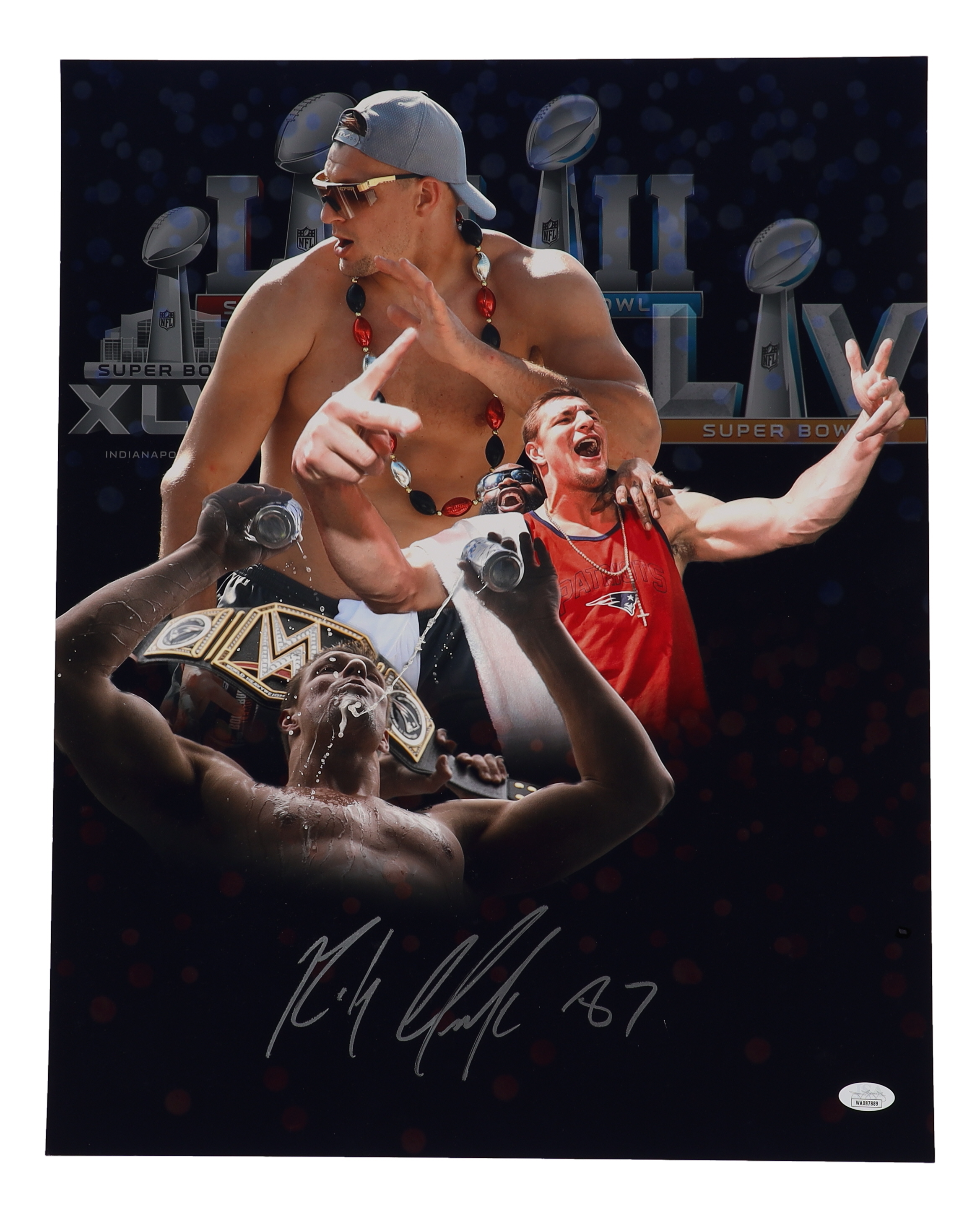 Photo measures 16" x 20" in size and has been hand-signed by Rob Gronkowski (New England Patriots).