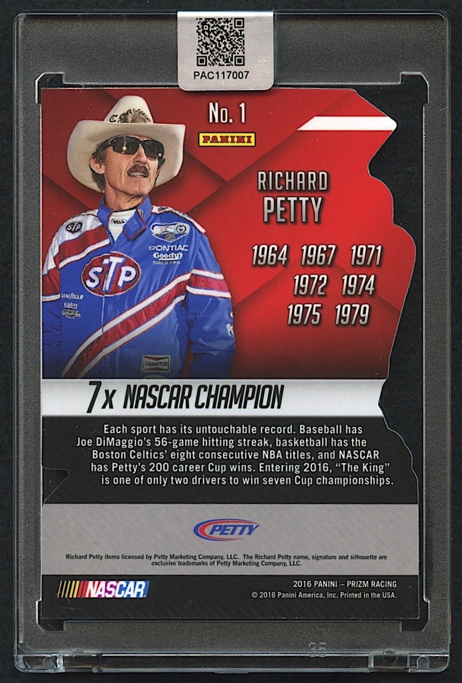 Richard Petty Signed 2016 Panini Prizm Champions #1 (PA Encapsulated)