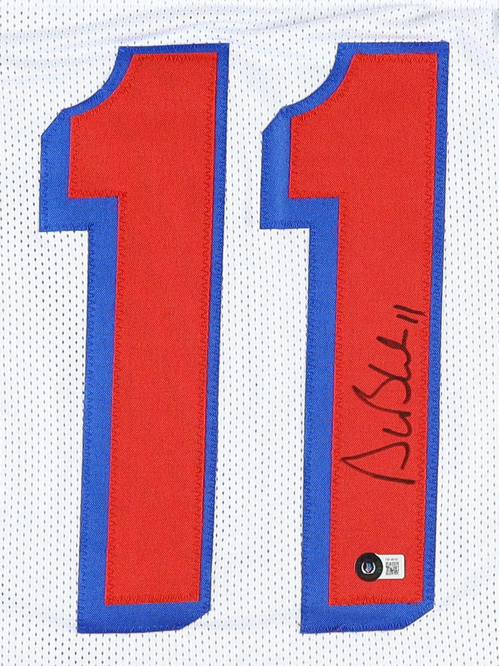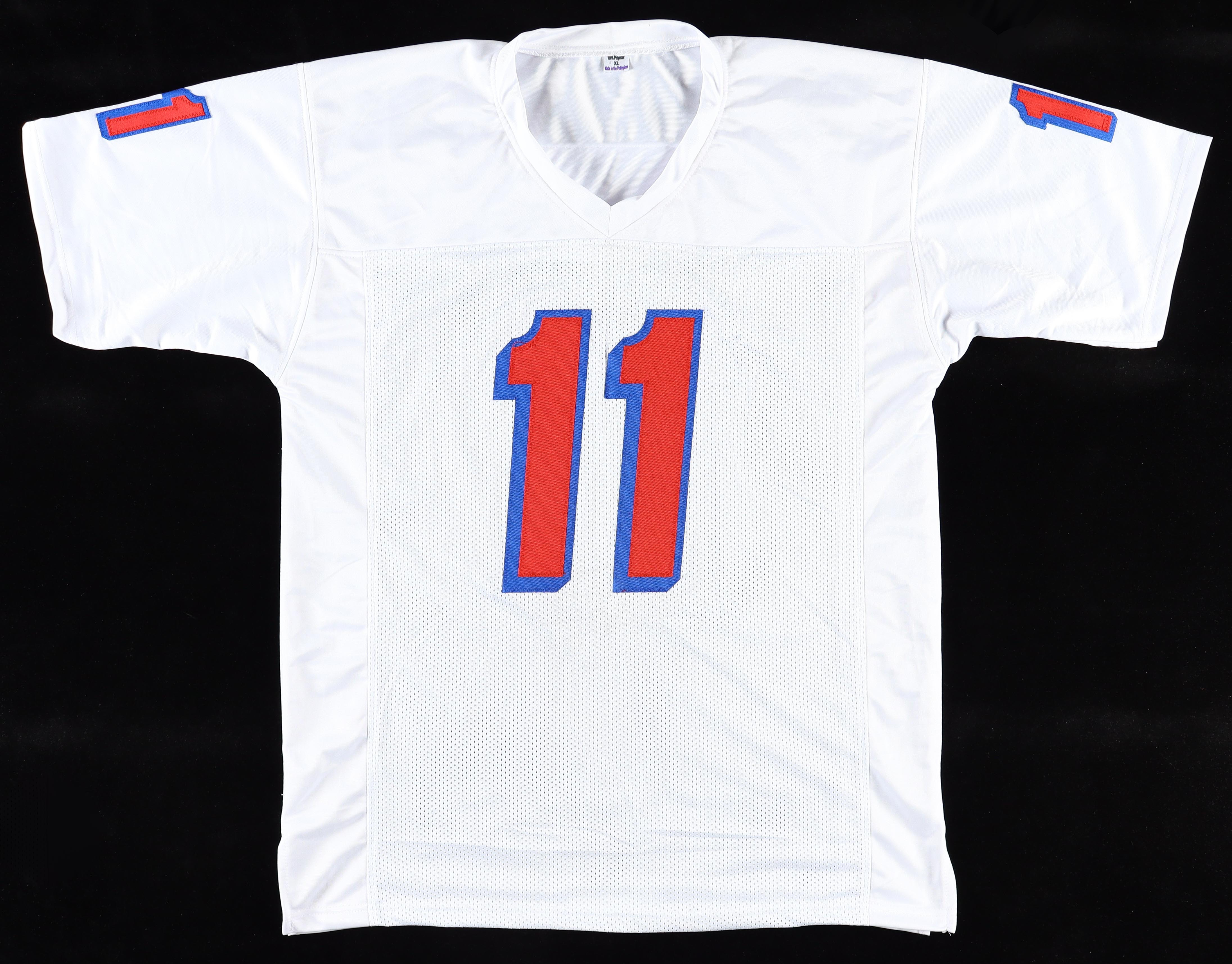 Custom jersey. Everything is sewn on, size XL. Hand-signed by Drew Bledsoe.