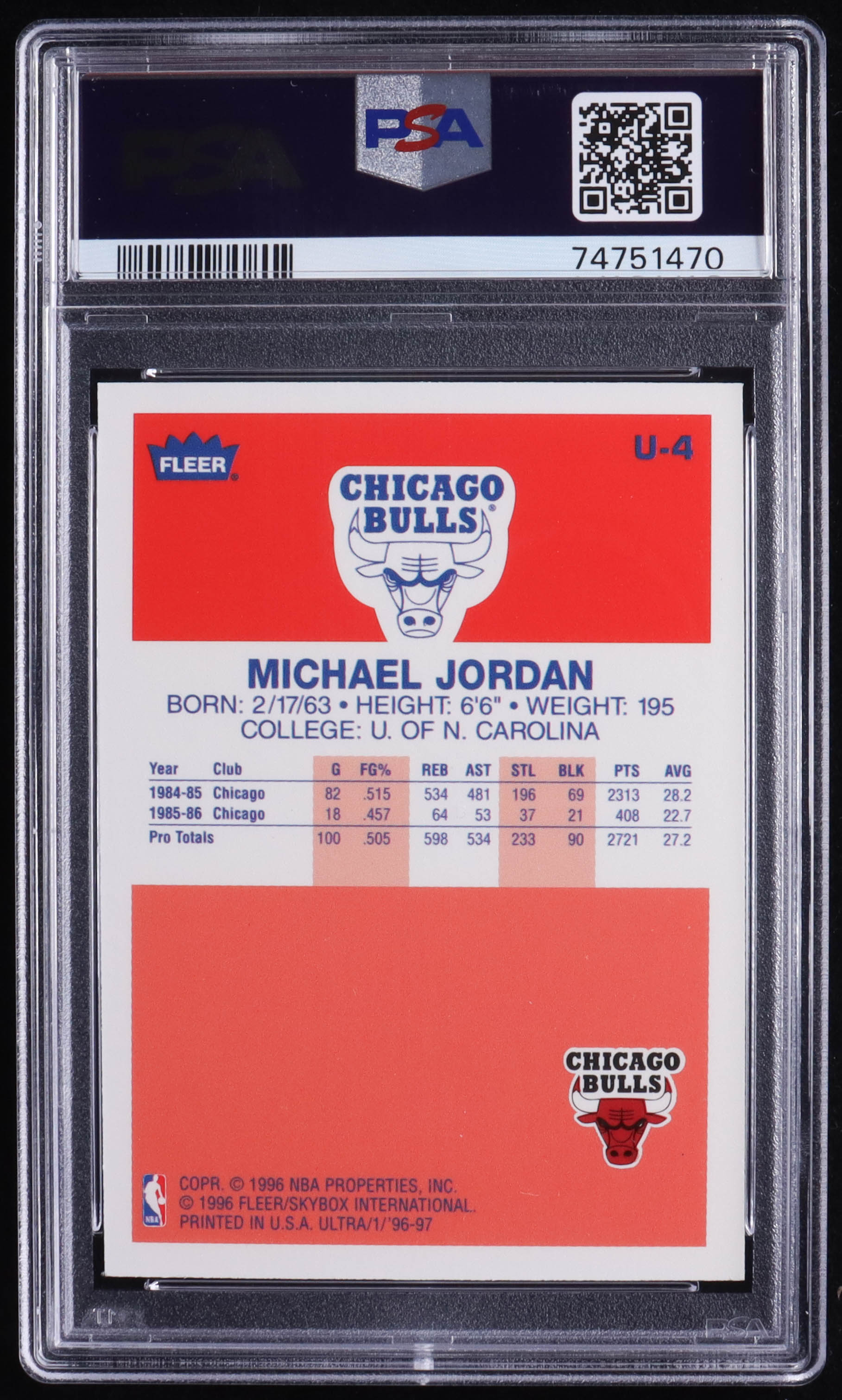 Michael Jordan 1996-97 Ultra Decade of Excellence #U4 (PSA 10)